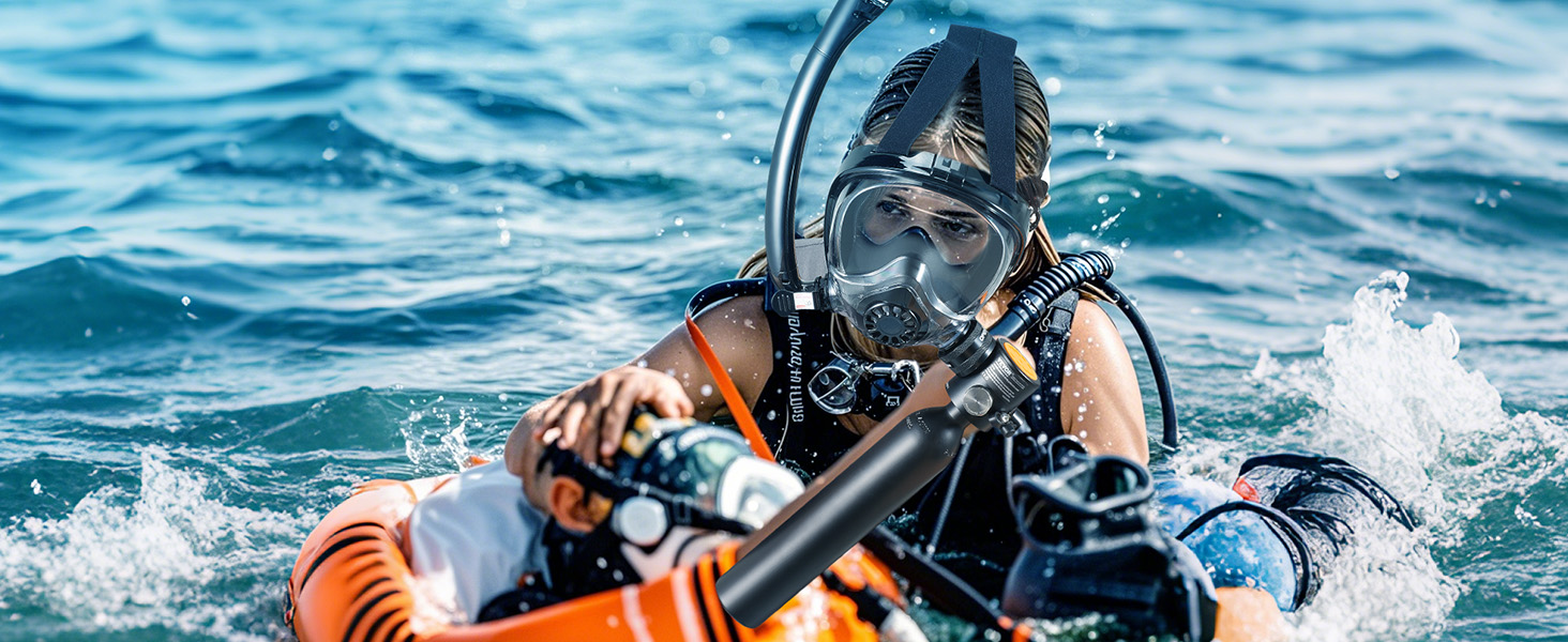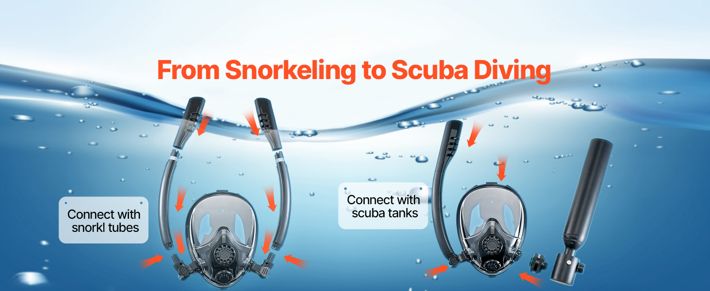Благодаря сменным маскам и мундштуку для подводного плавания, наш портативный баллон для подводного плавания с аквалангом легко меняет конфигурацию для подводного плавания или дайвинга. Он разработан с учетом особенностей вашего приключения.