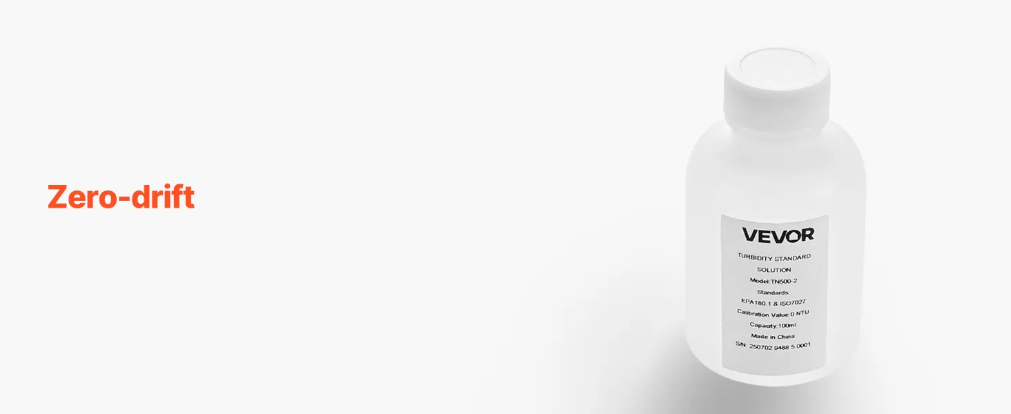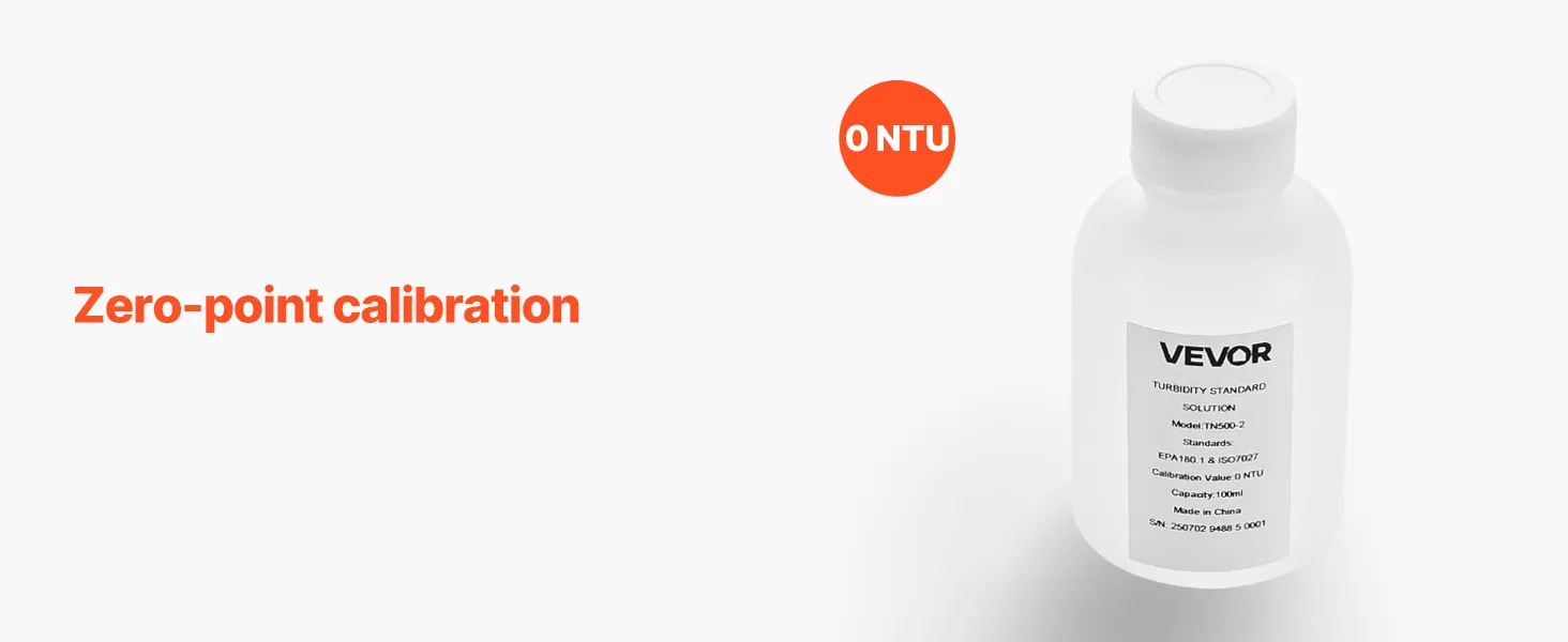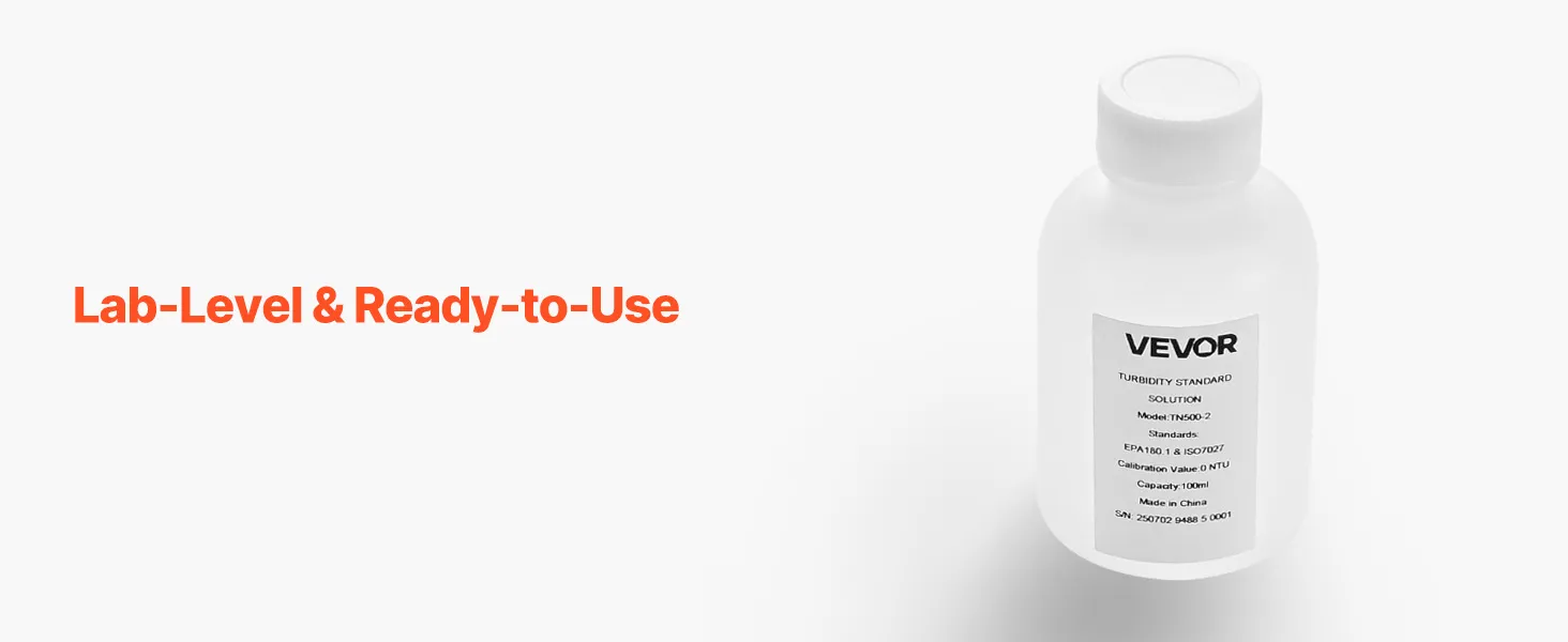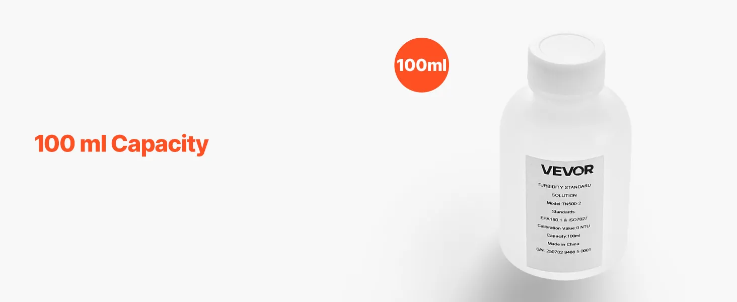 VEVOR Turbidity Calibration Solution, 0 NTU, 100 ml Capacity, Standard Turbidity Solution Refill for Turbiditymeter, Zero-drift for Stable Concentration, Ready to Use, for Both White and Red Light