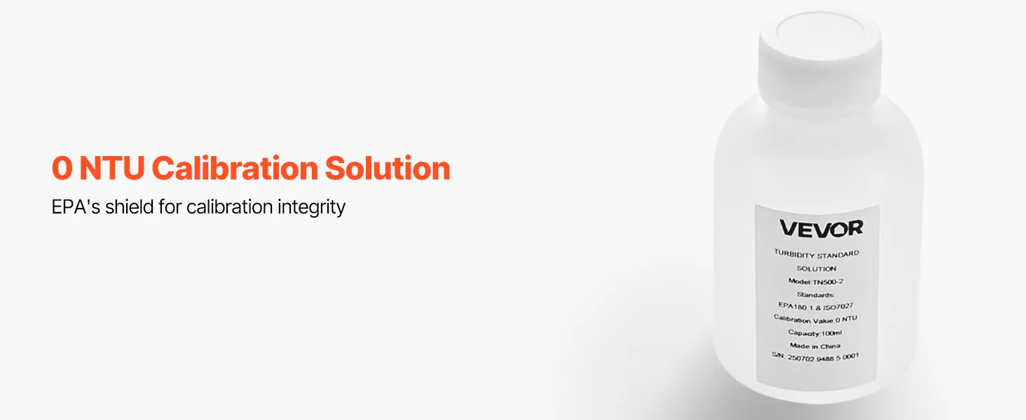 The 0 NTU turbidity calibration solution is EPA-certified to maintain calibration integrity, ideal for zero-point adjustment of turbidity meters.