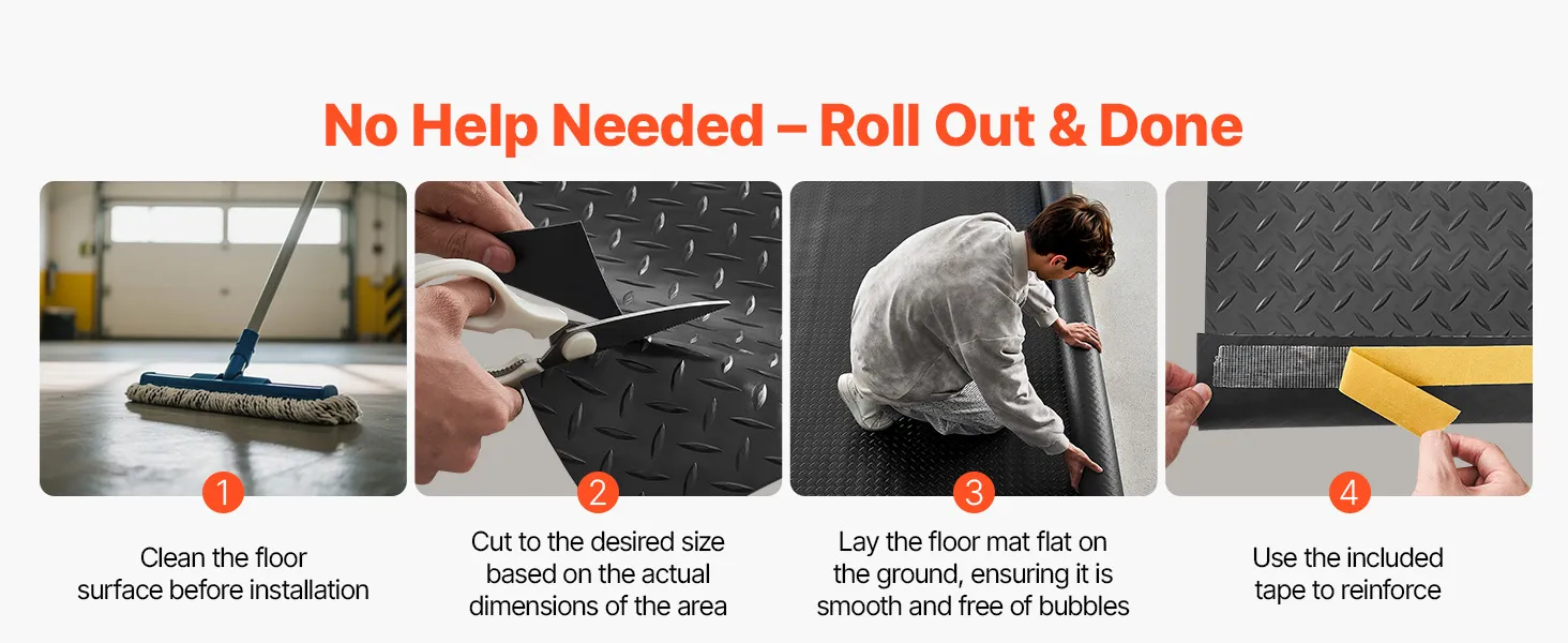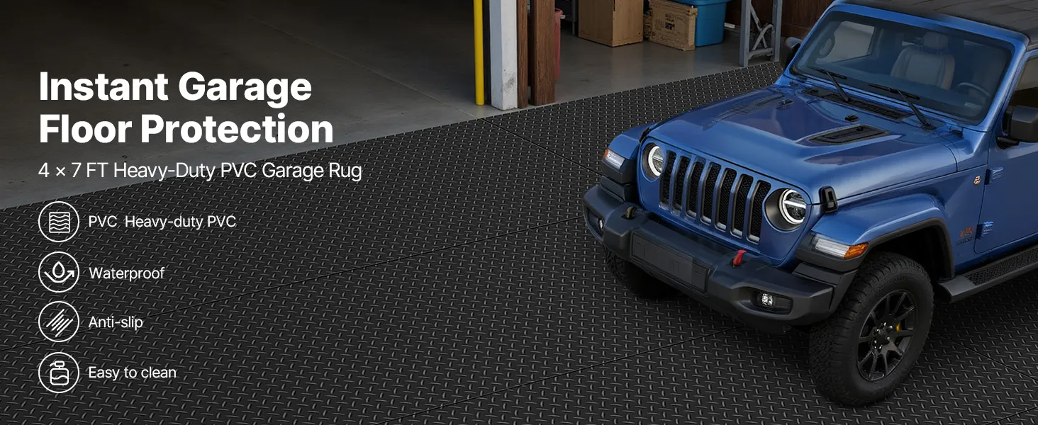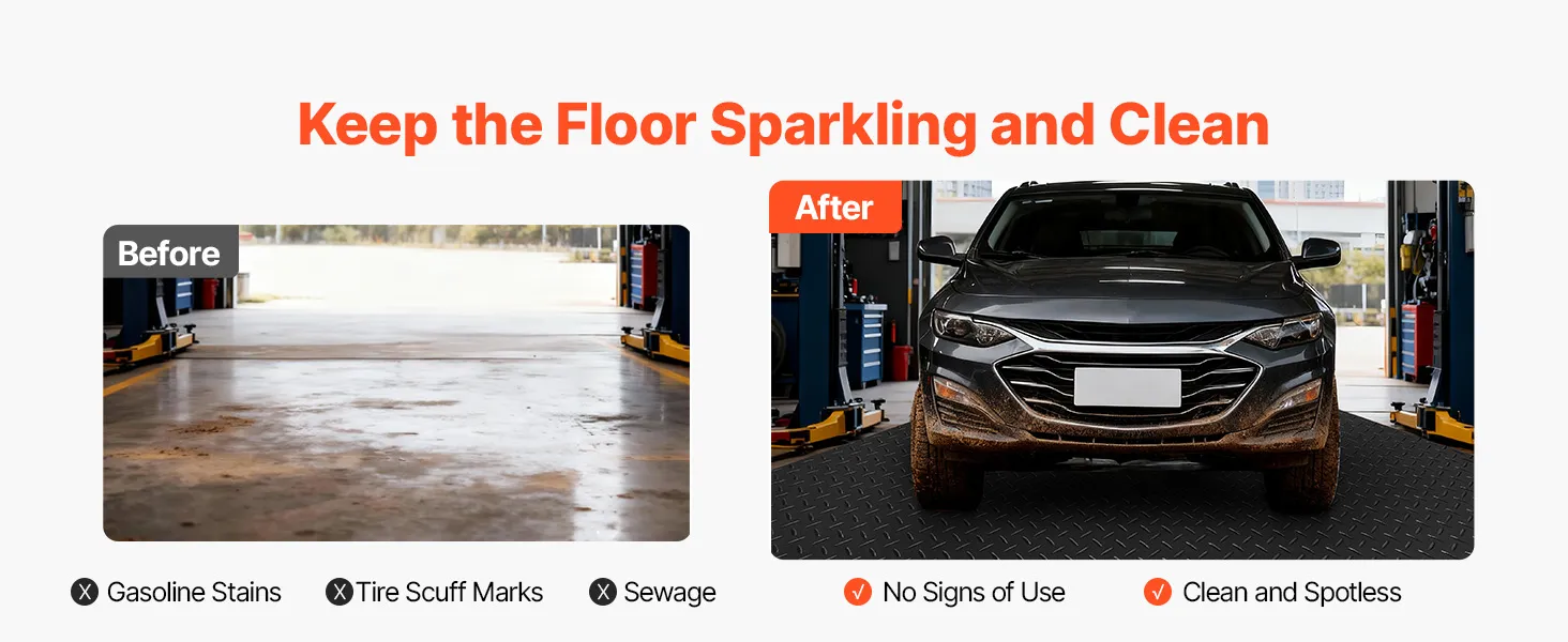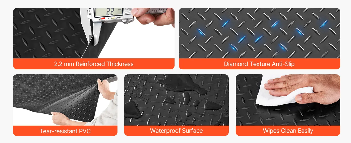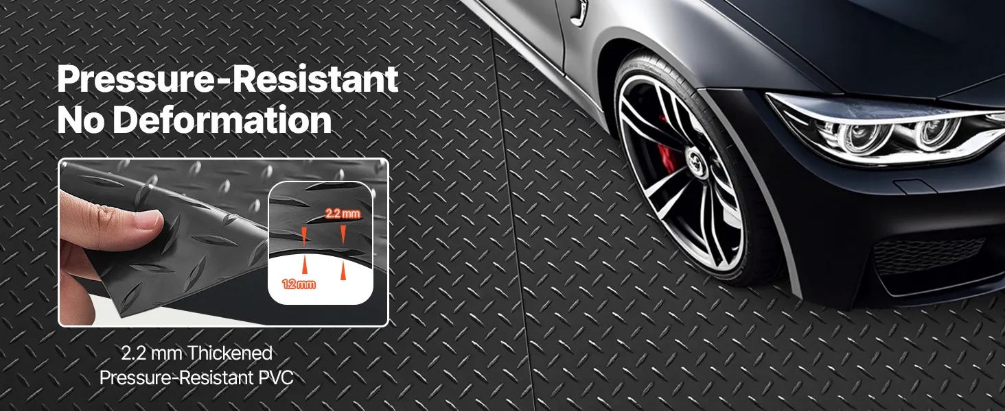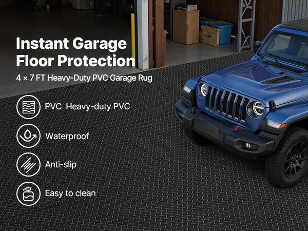 Choose the garage flooring roll for reliable, pressure-resistant, slip-resistant, and wear-resistant protection. Its waterproof surface cleans easily and the large coverage fits most vehicles or provides a cushioned area in warehouses.