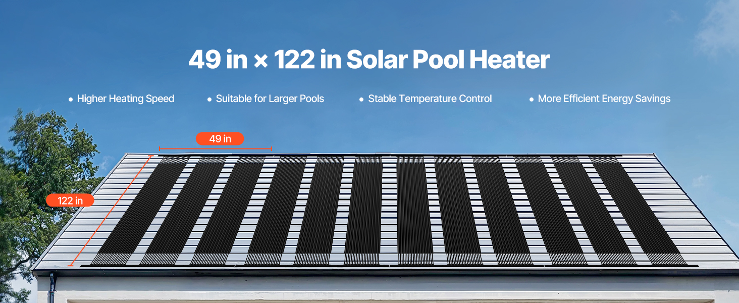• Мощный обогрев: Большие солнечные обогреватели для бассейнов обычно оснащены большим количеством панелей солнечных коллекторов, поглощающих больше солнечной энергии и обеспечивающих большую теплопроизводительность, что делает их идеальными для бассейнов большего размера, что приводит к большей экономии энергии.