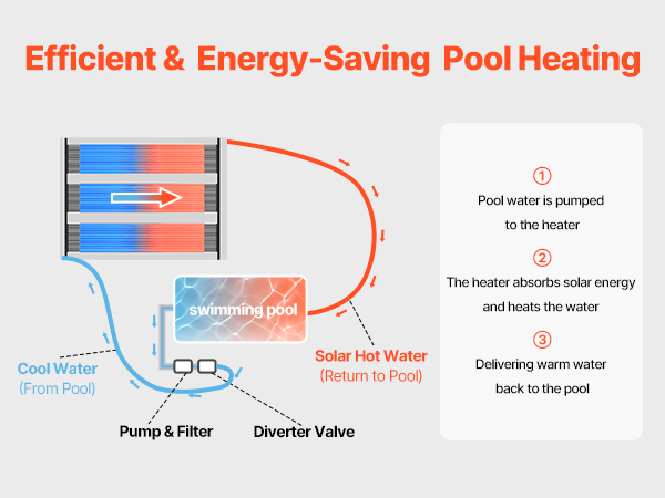 • Широкая совместимость: Наши солнечные системы подогрева воды для бассейнов совместимы с большинством типов бассейнов, включая круглые, овальные и прямоугольные бассейны, обеспечивая постоянный и длительный нагрев для использования в жилых помещениях.