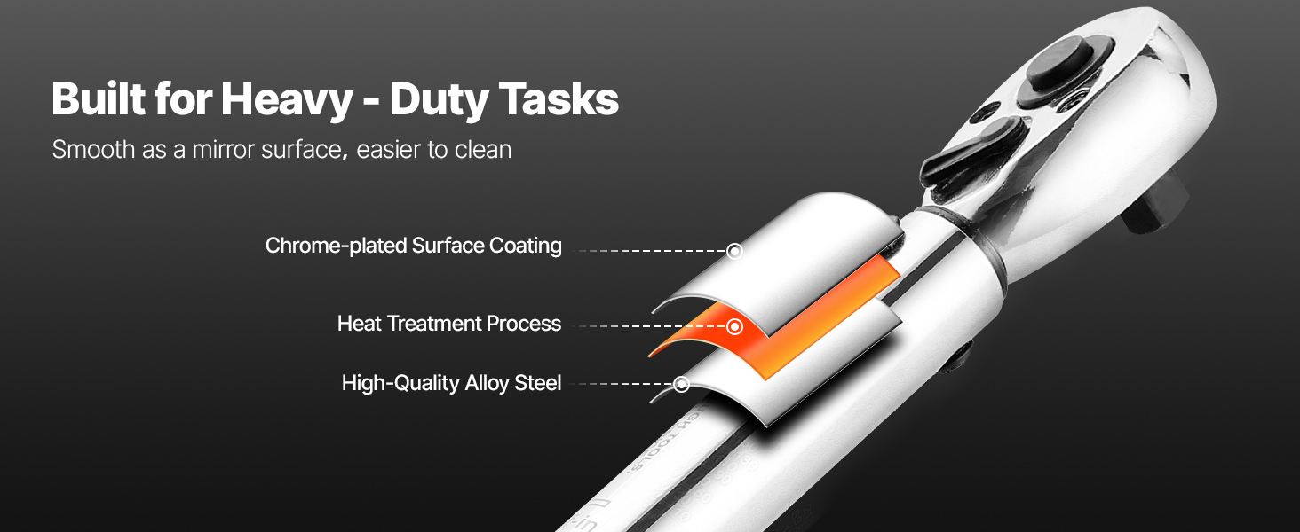 Изготовленный из высококачественной легированной стали и термообработанный с хромированной поверхностью, этот динамометрический ключ click обеспечивает исключительную прочность, точность и долговечность, что делает его идеальным выбором для профессиональных работ по креплению.