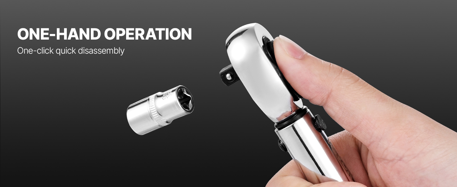 Заданная точность крутящего момента ± 3% отвечает потребностям прецизионных приборов и высококлассного технического обслуживания автомобилей. Храповик с 72 зубьями поворачивается на 5 ° при каждом щелчке, что обеспечивает простоту эксплуатации в стесненных условиях или при необходимости точной регулировки.