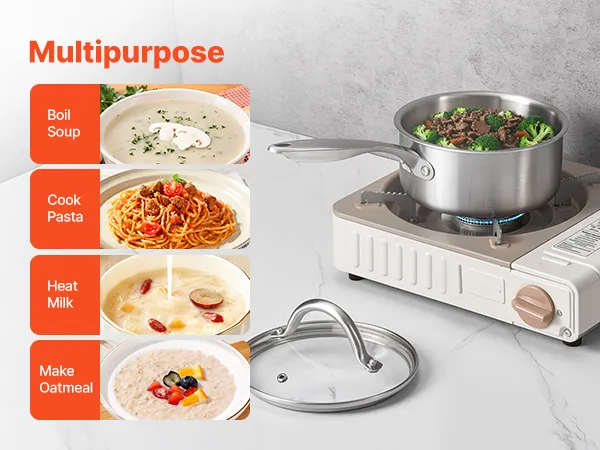 Designed for multiple cooking needs — our stainless steel saucepan is great for boiling noodles, preparing sauces, making soups, heating milk, or cooking oatmeal. A true all-rounder in your kitchen.
