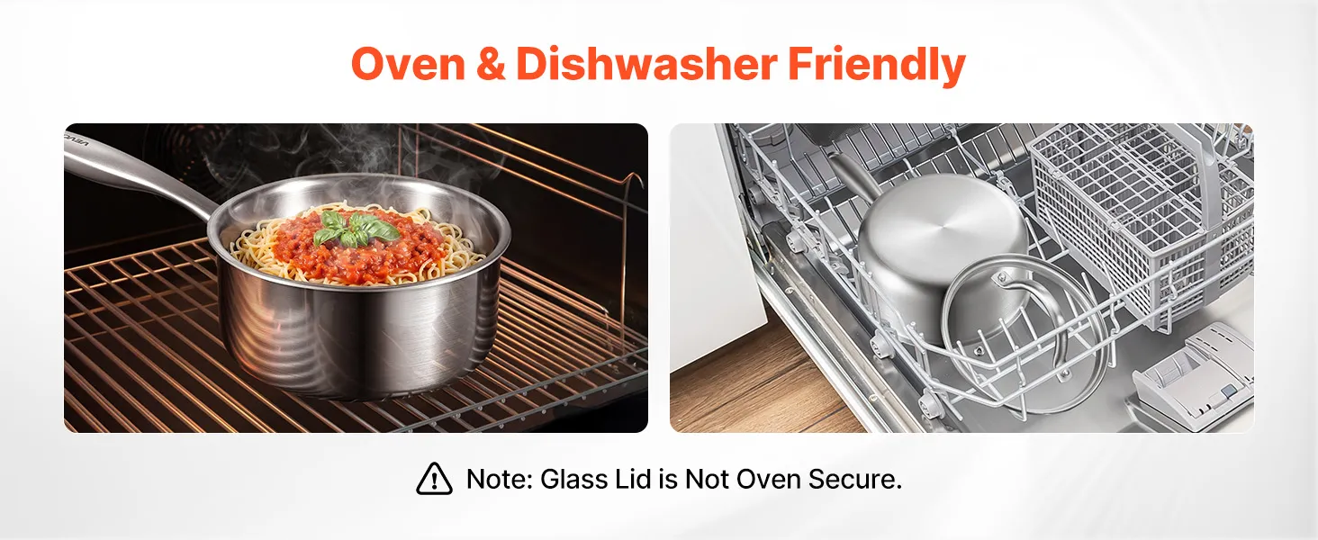 Heat-resistant up to 600°F, this sauce pan is secure for oven use. The uncoated surface avoids damage and is dishwasher secure, making cleanup easy and hassle-free.