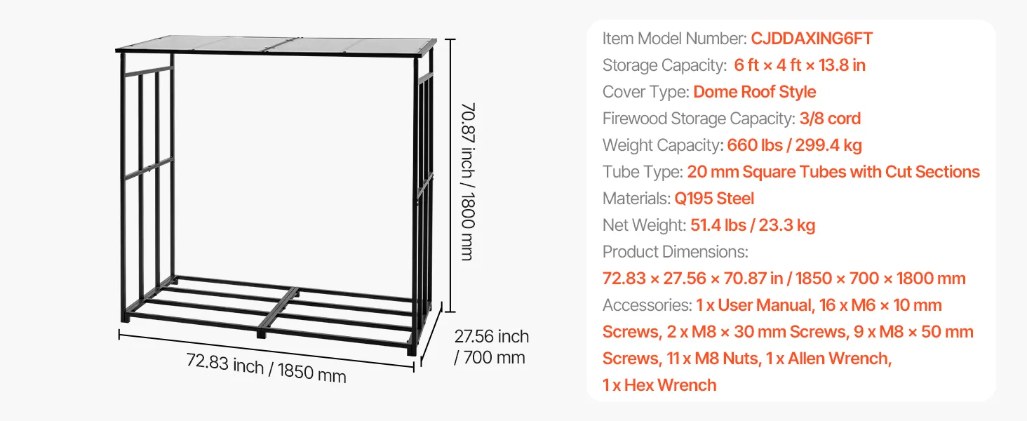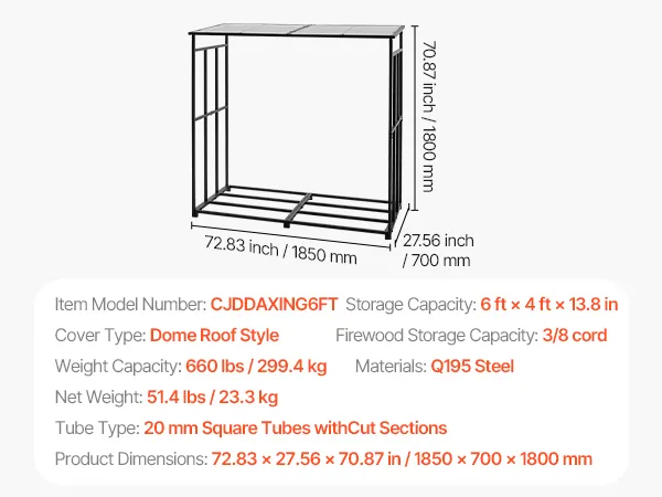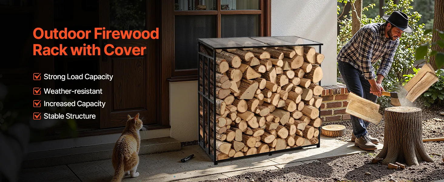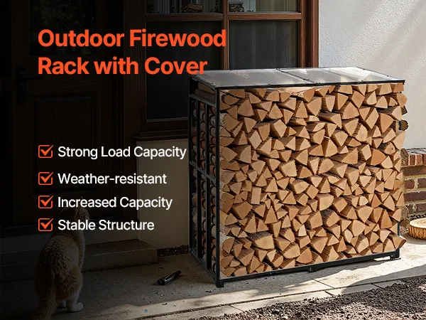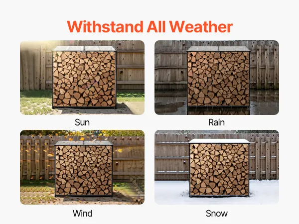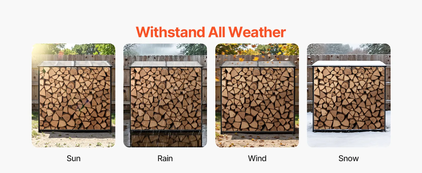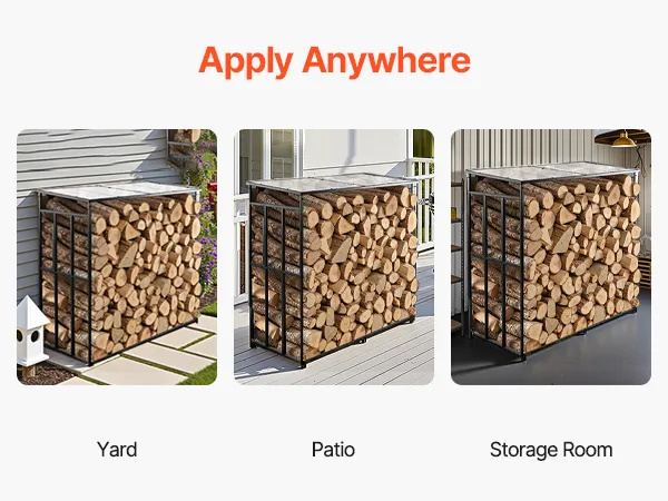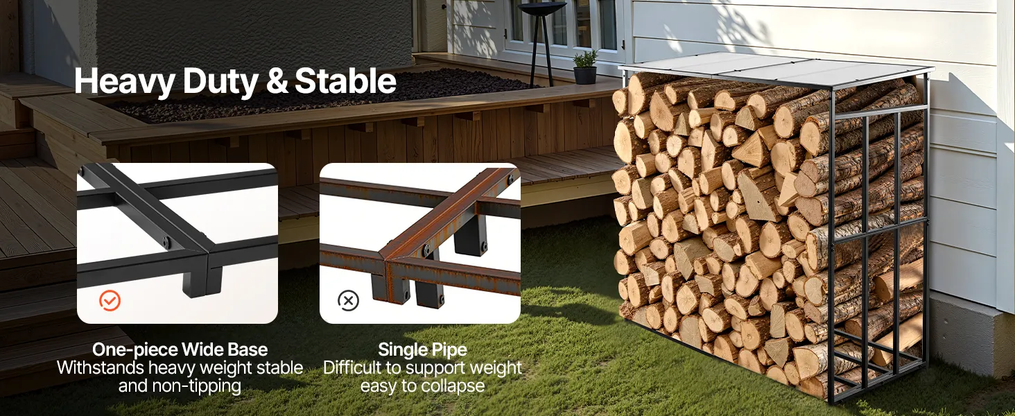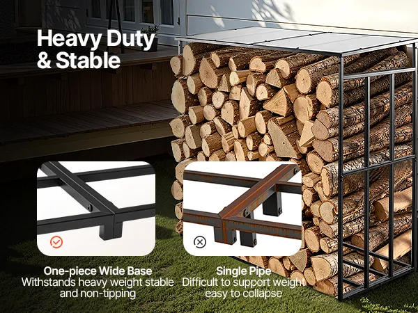 • Stable Free-Standing Design: With a weight of 51.4 lbs, this metal wood stand features a stable structure with adjustable leveling feet. It remains steady even in snow-heavy or rainy regions—ideal for various outdoor environments.