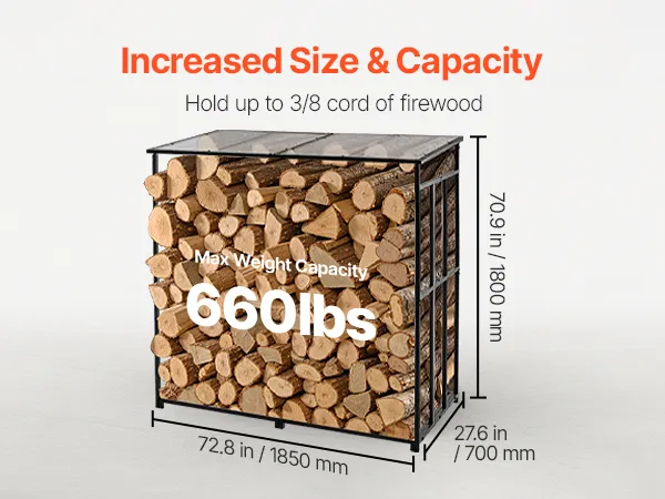 • Spacious Storage Capacity: This firewood rack holds approximately 3/8 cord of wood, providing ample space for home heating needs, backyard fire pits, or camping supplies. Designed for convenience, it keeps logs neatly organized and easy to access.