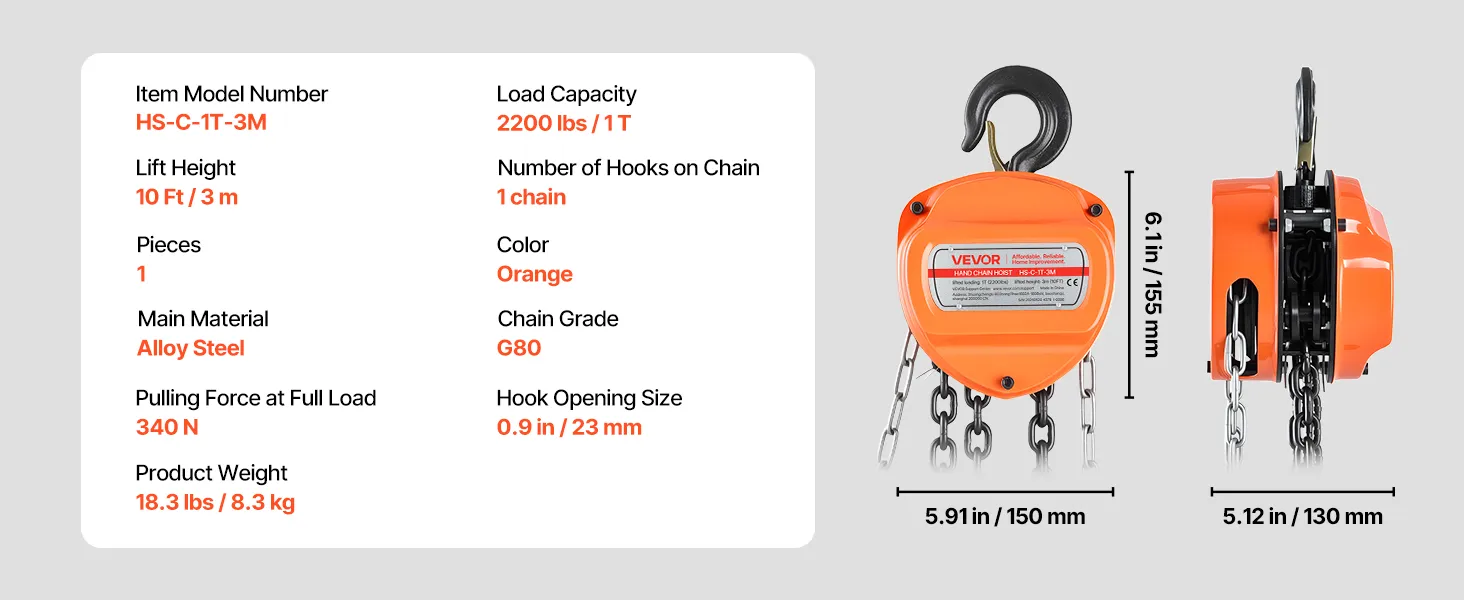 Steel Manual Chain Hoist: Effortlessly Lift 2200 lbs