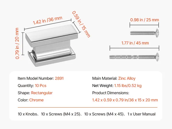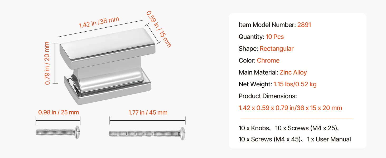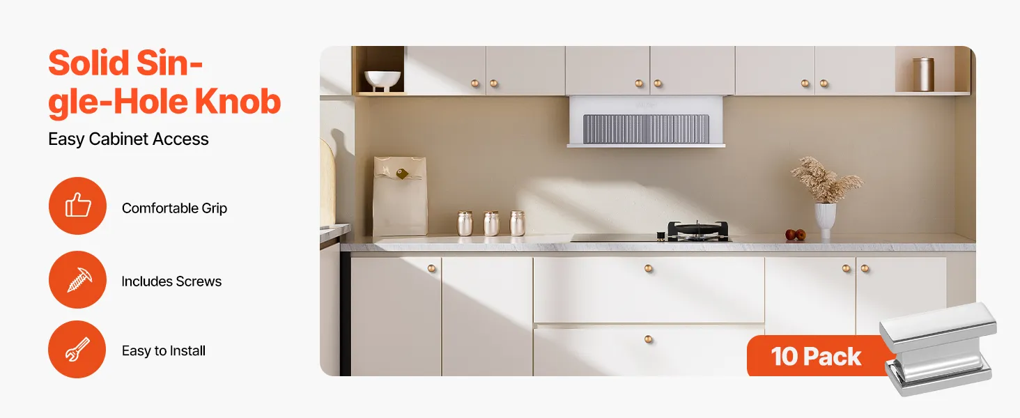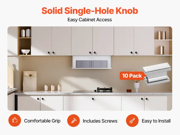 • Single-Hole Solid Knobs: This 10-pack value set includes cabinet knobs sized at 1.42 x 0.59 x 0.79 in, weighing only 1.15 lbs/0.52 kg. Compact and stylish, they’re ideal for cabinets, wardrobes, and more. It’s an easy way to upgrade your entire home