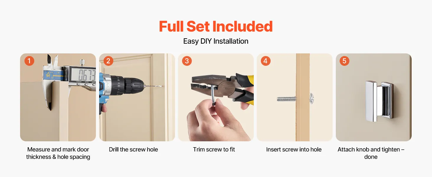 • Easy Installation: Our dresser knobs come with twenty screws in two sizes to fit cabinet doors 0.79-1.57 in/20-40 mm thick. The screws can be trimmed to match the door thickness. No complicated tools or skills required, just simple setup