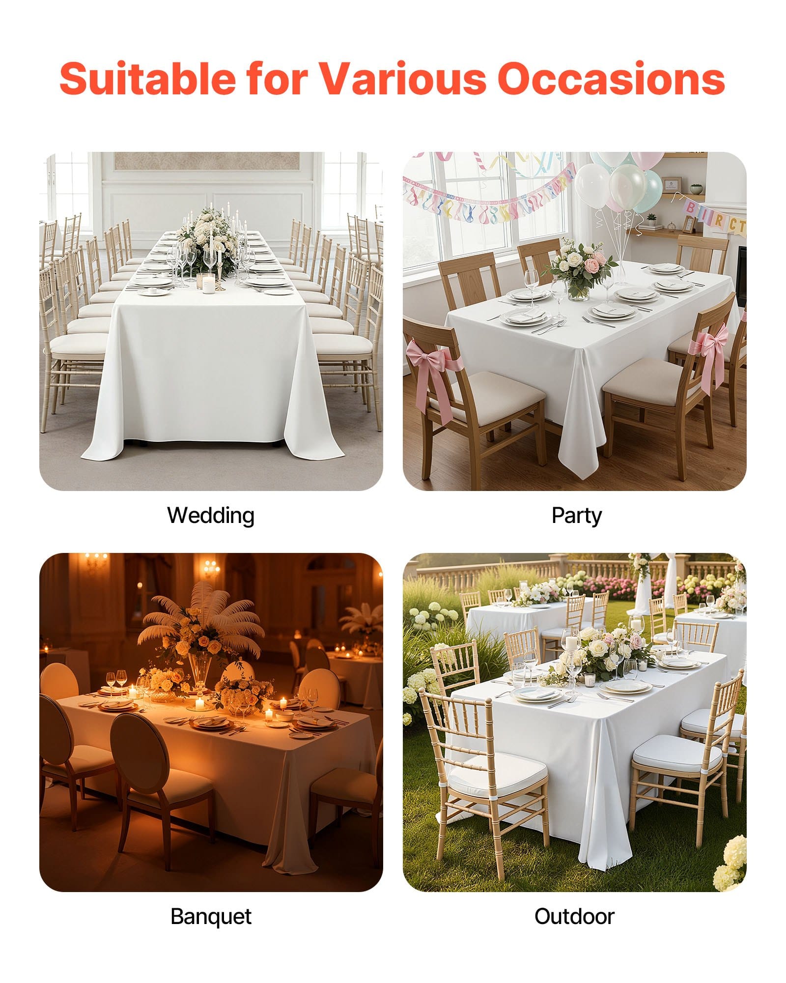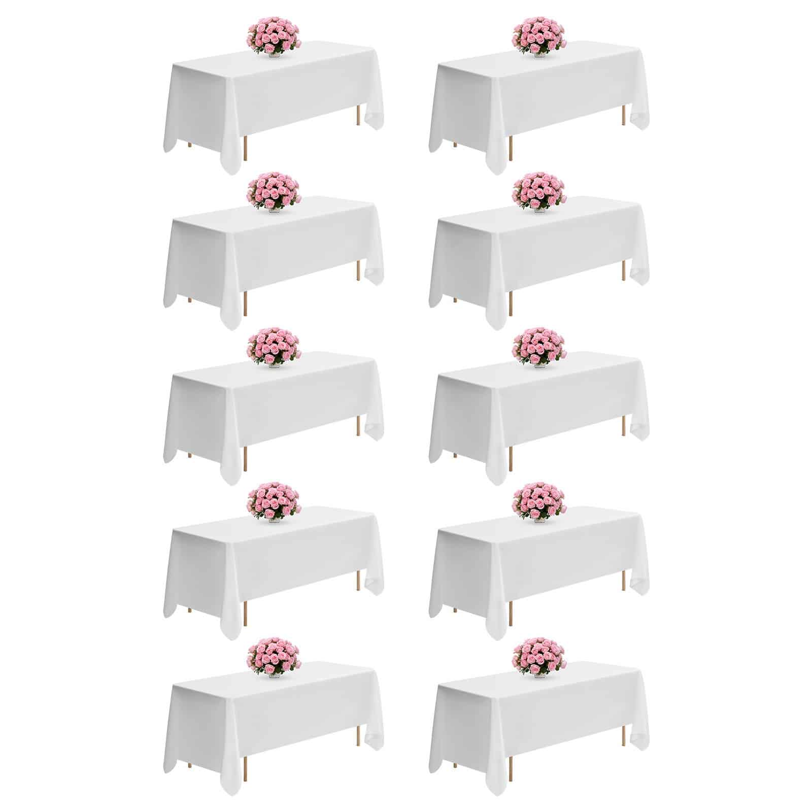 VEVOR White Tablecloths for Rectangle Tables, 10 Pack, 70 x 120 Inches, Reusable and Machine Washable Table Clothes, Wrinkle-Resistant Polyester Fabric Table Covers for Wedding, Party, Banquet