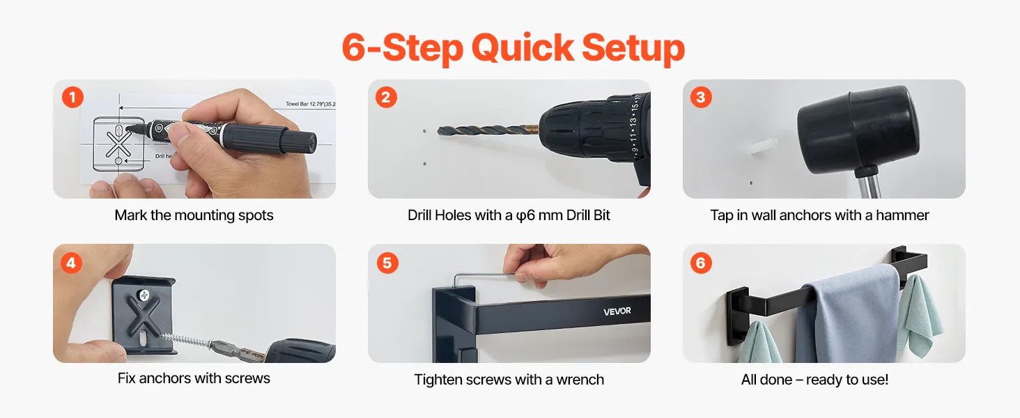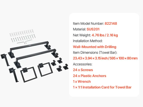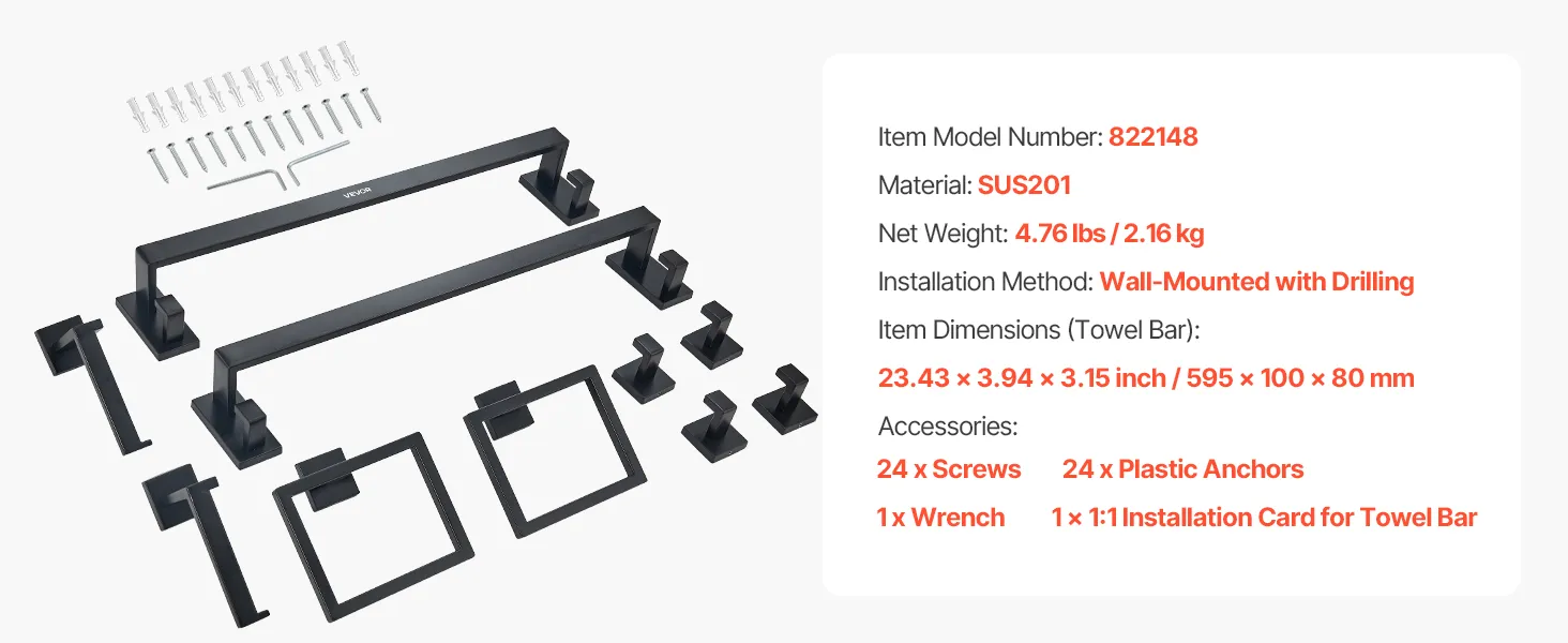 • Premium Materials: Crafted from quality stainless steel, this matte black bathroom accessories set offers excellent waterproof, rust-resistant, and corrosion-resistant performance for lasting durability. The sturdy metal construction ensures years of reliable use, while the wall-mounted design provides greater stability and load-bearing capacity