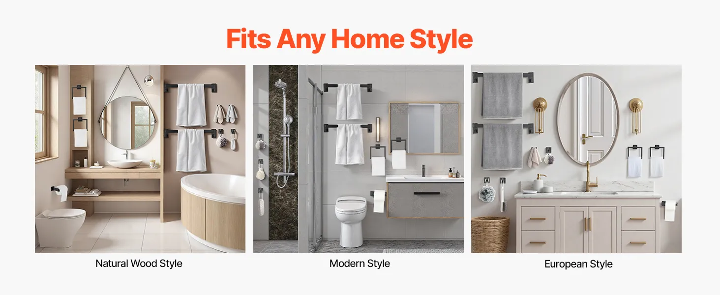 • Wide Application: This bathroom towel rack is ideal for bathrooms, shower rooms, remodeled bathroom closets, kitchen cabinets, laundry rooms, and more. Robes, bath towels, pants, shirts, swimsuits, coats, bags, shower balls, or other items can be easily hung on our bathroom hardware set, helping keep your home neat and organized