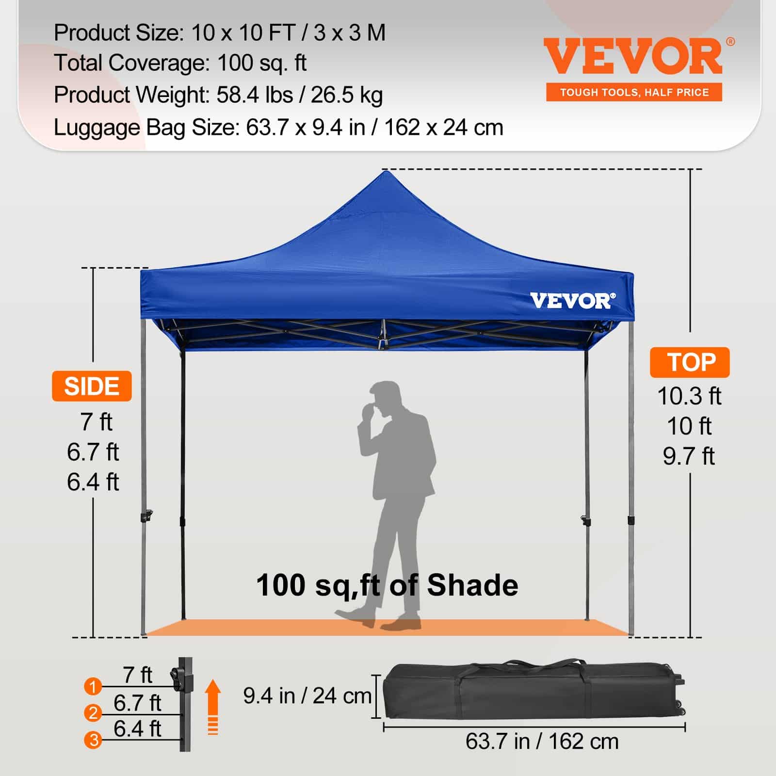 Всплывающий тент VEVOR размером 10 x 10 футов имеет верх из полиэстера весом 240 г, покрытый ПВХ, и водонепроницаемые прозрачные боковины из ПВХ, которые защищают от солнца, ветра и дождя. Наша палатка perfect shelter обеспечит защиту от любых погодных условий круглый год; усовершенствованная выдвижная конструкция экономит ваше время и усилия при установке. Мы создали идеальную палатку! Поднимите свою страсть к занятиям, которые вам нравятся, на новый уровень и посмотрите, чего вы упускали!