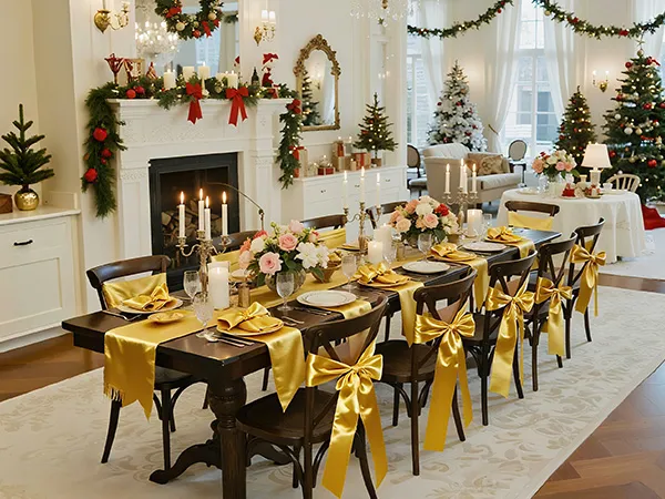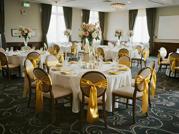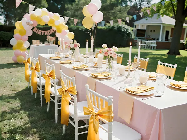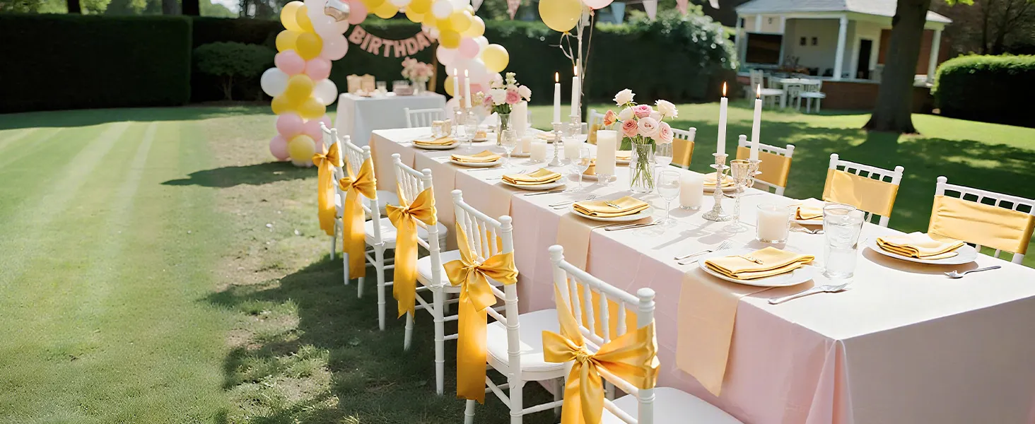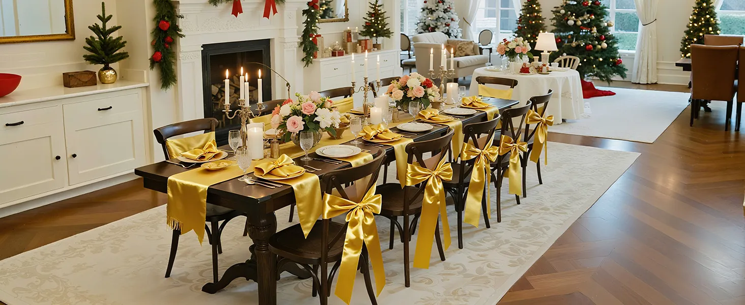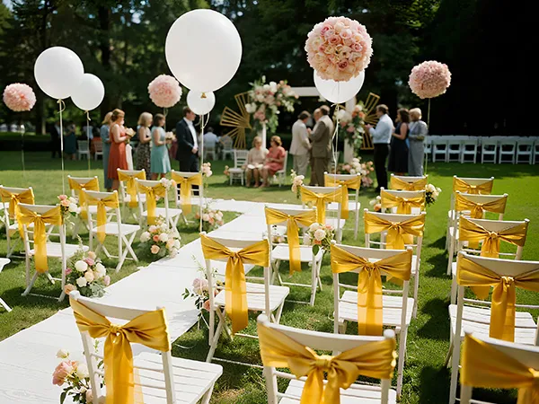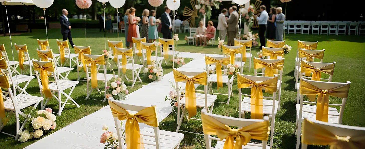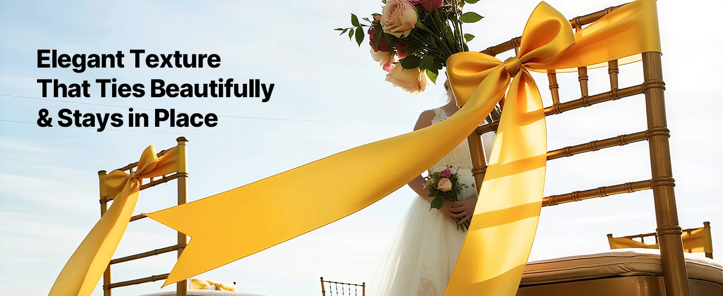 A2: The sashes measure approximately 275cm x 17cm (108" x 6.7") and are designed to fit a wide range of chairs—including banquet chairs, folding chairs, Chiavari chairs, and dining chairs, suitable for chairs of most sizes.