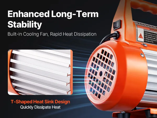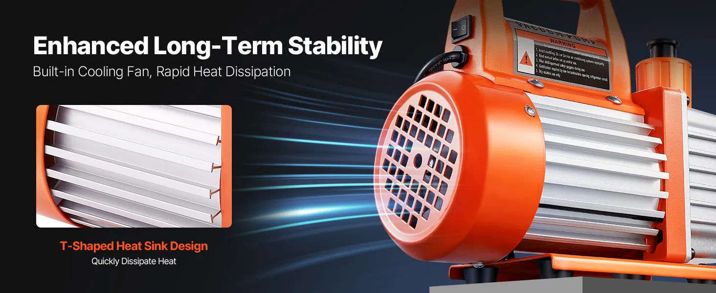 • Stable, Reliable Operation: Driven by a 4-pole high-torque motor, this air conditioning vacuum pump provides long-lasting power and efficiency. The built-in cooling fan avoids overheating, ensuring reliable performance even during extended use