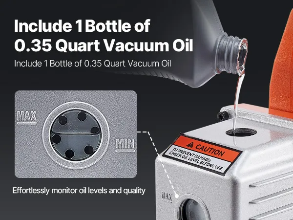 • User-Friendly Design: Equipped with a 0.27 qt. (260 ml) oil capacity and a visible oil window, monitoring oil levels has never been easier. Plus, we’ve included a bottle of 0.35 qt. (330 ml) vacuum oil to get you started