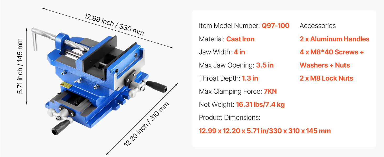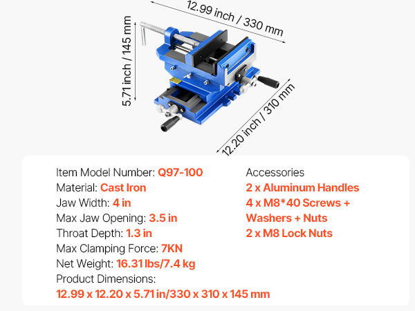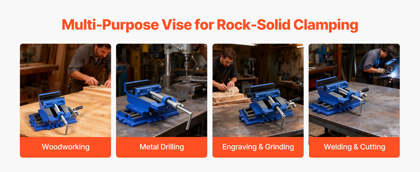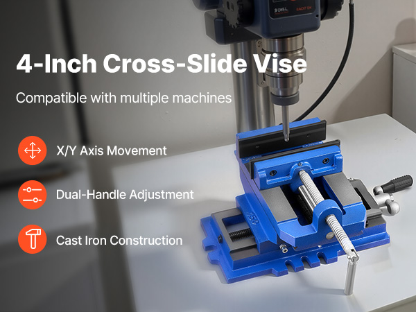 Built from high-strength cast iron, this cross slide drill press vise supports precise X/Y dual-axis adjustments. Its dual handles allow smooth horizontal and vertical movement. Ideal for milling machines, drill presses, and more.