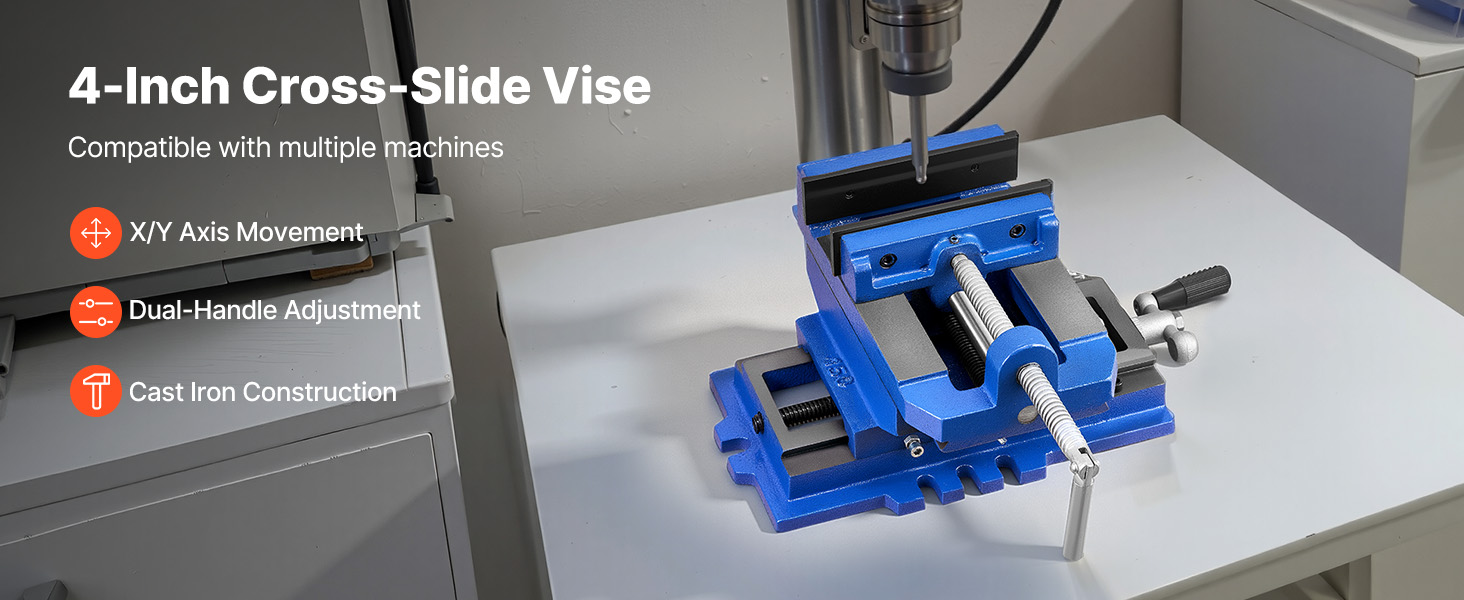 VEVOR Cross Slide Drill Press Vise, 4 Inch Jaw Width, 2 Way X-Y Axis Bench Vise, 3.5 Inch Max Jaw Opening, Heavy Duty Cast Iron, Workbench Vice Clamp, for Woodworking Drilling CNC Milling Machine