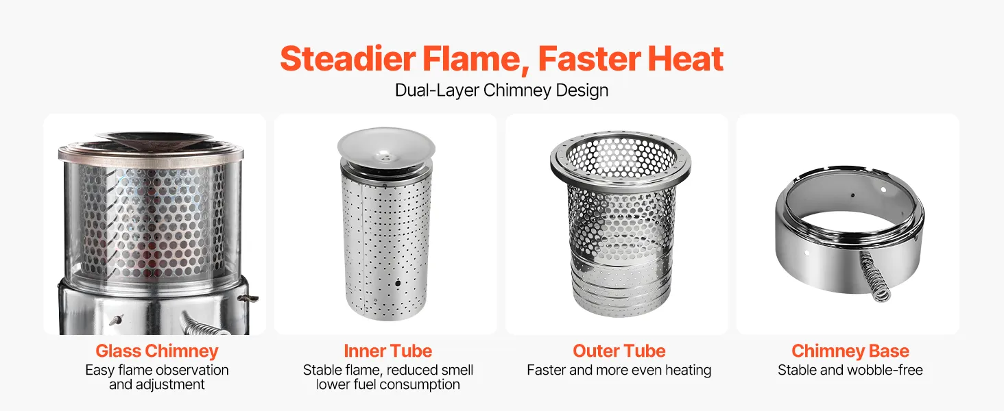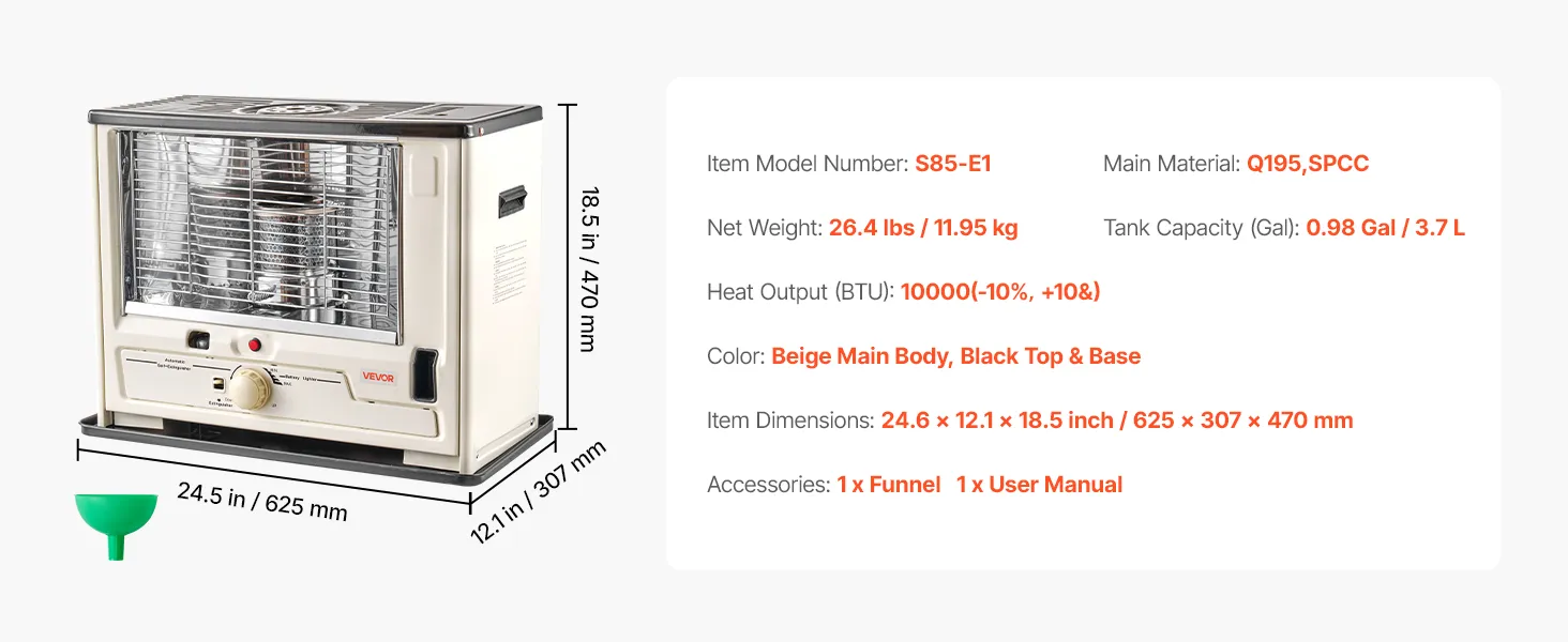Comes with a variety of practical accessories for convenient setup and flexible use. Combine them as needed to get the most out of your kerosene heater.