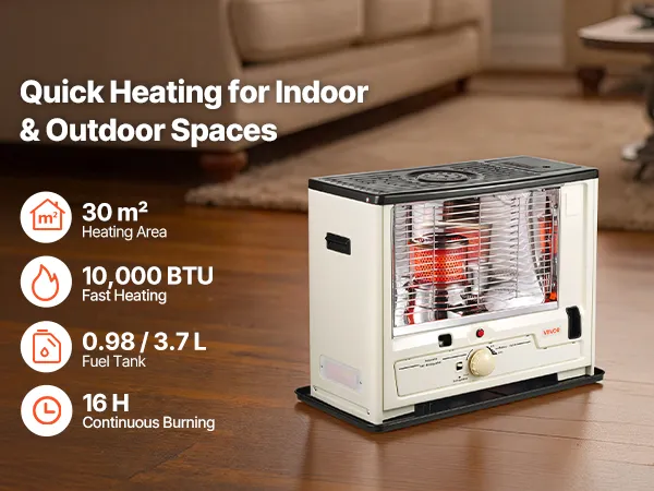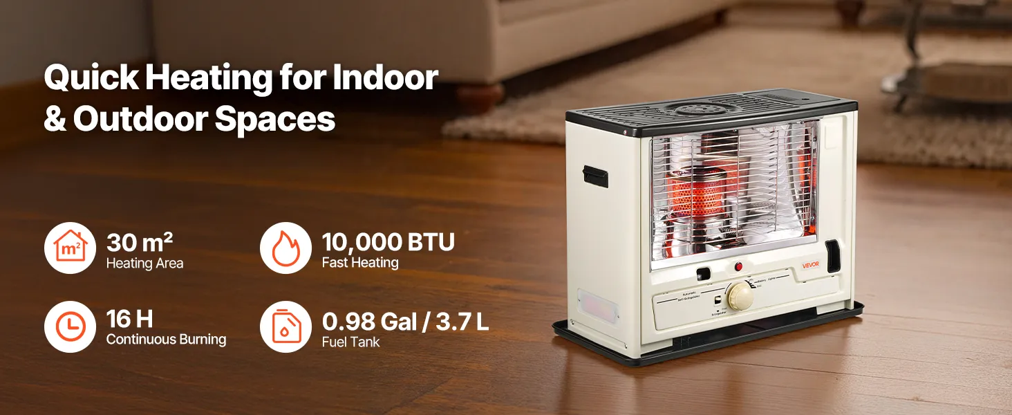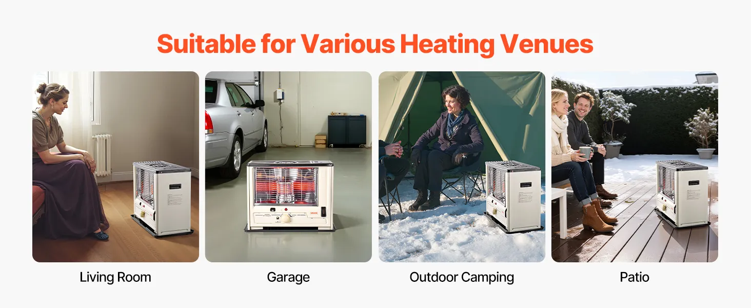 Whether you're in a garage, living room, tent, or campsite, this radiant kerosene heater provides reliable heating for open or enclosed spaces with minimal setup.