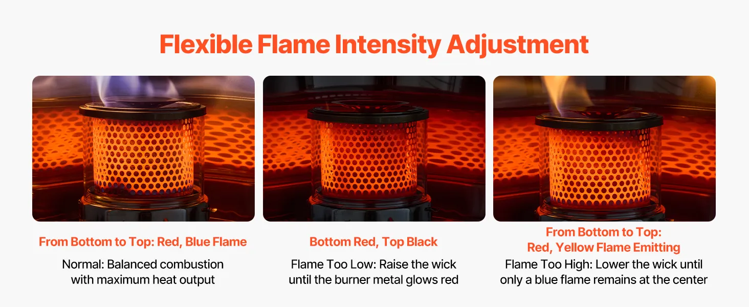 Easily adjust the heat output using the control knob. Monitor the flame to find the right level for different weather conditions—this kerosene space heater adapts to your year-round heating needs.