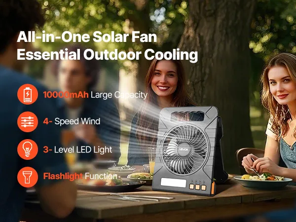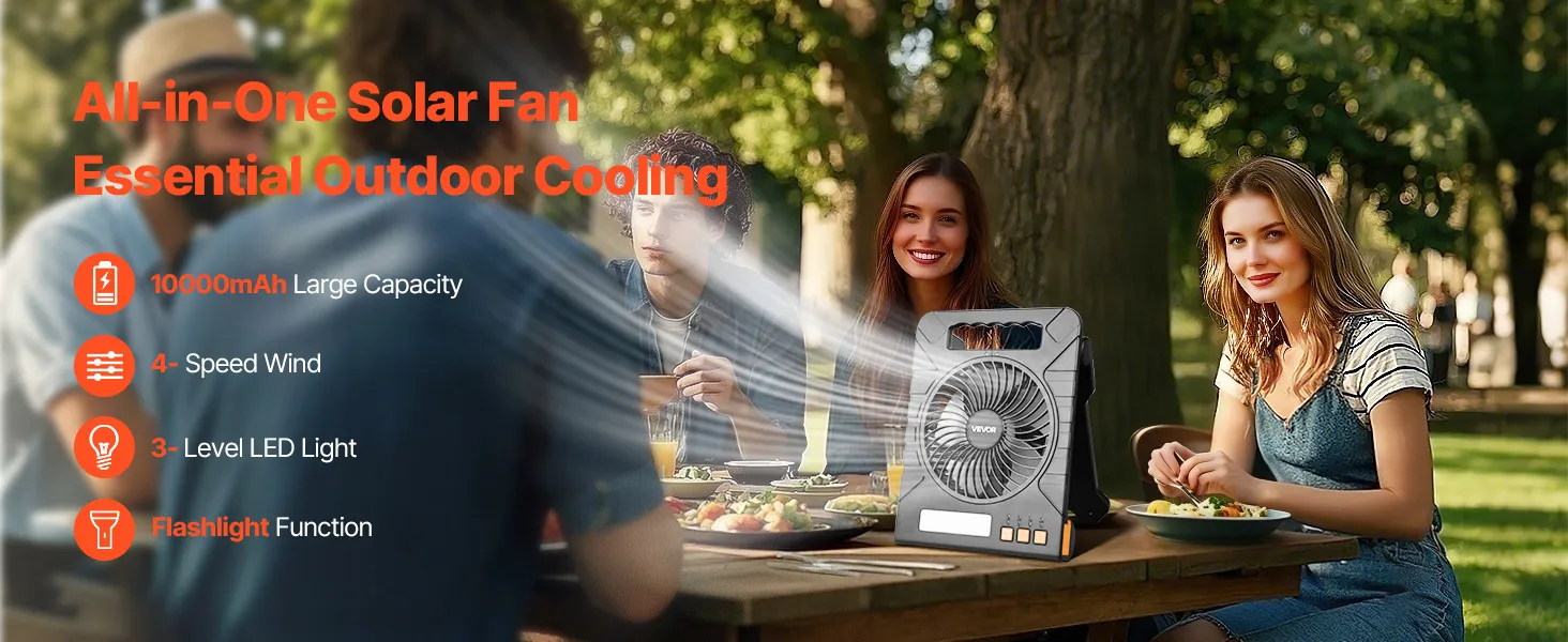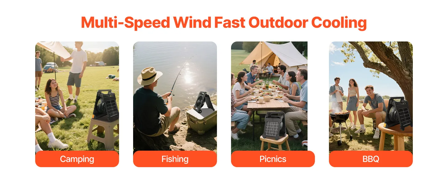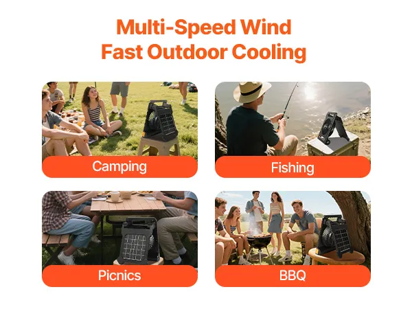 Whether you're camping, fishing, picnicking, or grilling, this multi-speed solar fan quickly cools the air, letting you fully enjoy your outdoor activities.