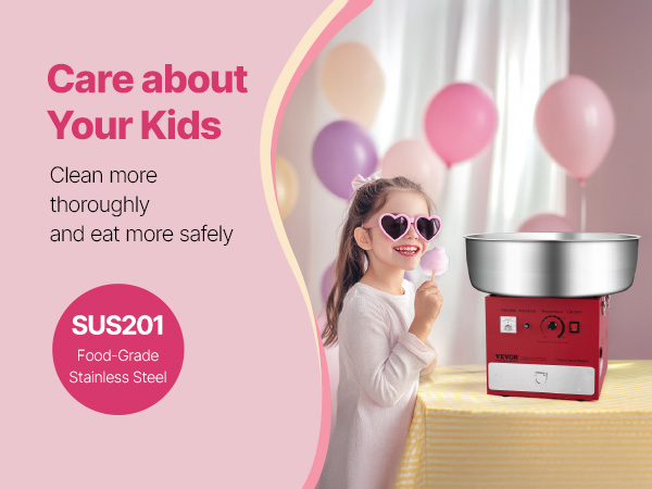 VEVOR Electric Cotton Candy Machine, 1000W Commercial Candy Floss Maker with 52cm in Stainless Steel Bowl, Sugar Scoop, and Drawer, Easy Home Use, Perfect for Kids Birthday, Family Party, Red