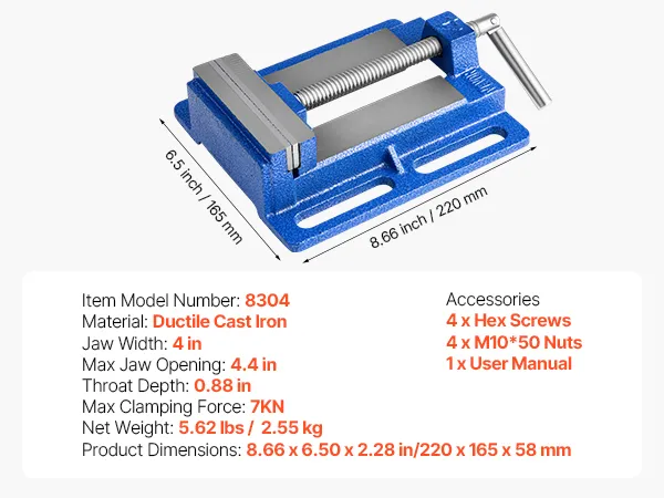 Crafted from high-strength cast iron, this drill press vise comes with long slots for easy installation and repositioning. Designed for versatility, it fits milling machines, drill presses, and more.