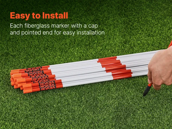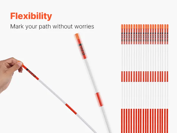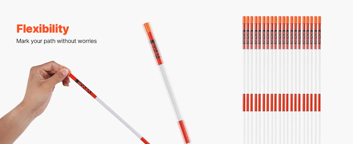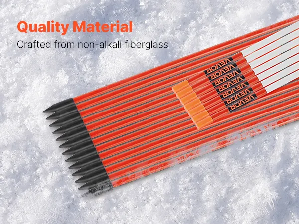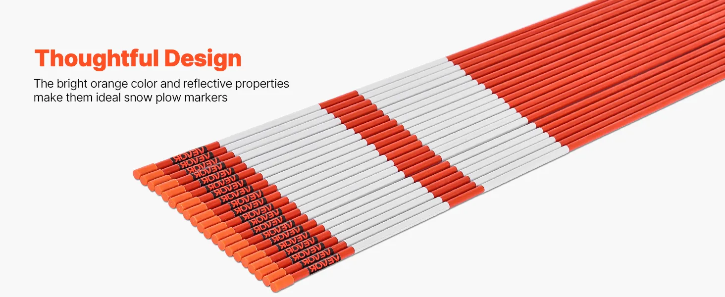 VEVOR Driveway Markers, 100Pcs 183cm Long 7.87mm Dia, Hi-Visibility Driveway Reflectors with 12 in Steel Drill Bits, Reflective Snow Sticks Fiberglass Pole for Parking Lots, Walkways, Snow Plowing