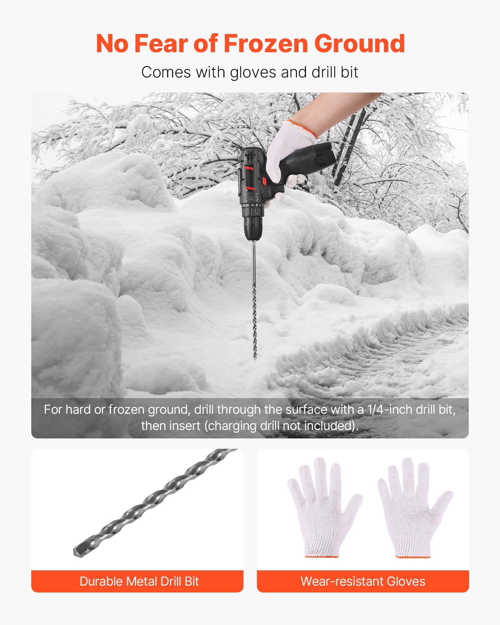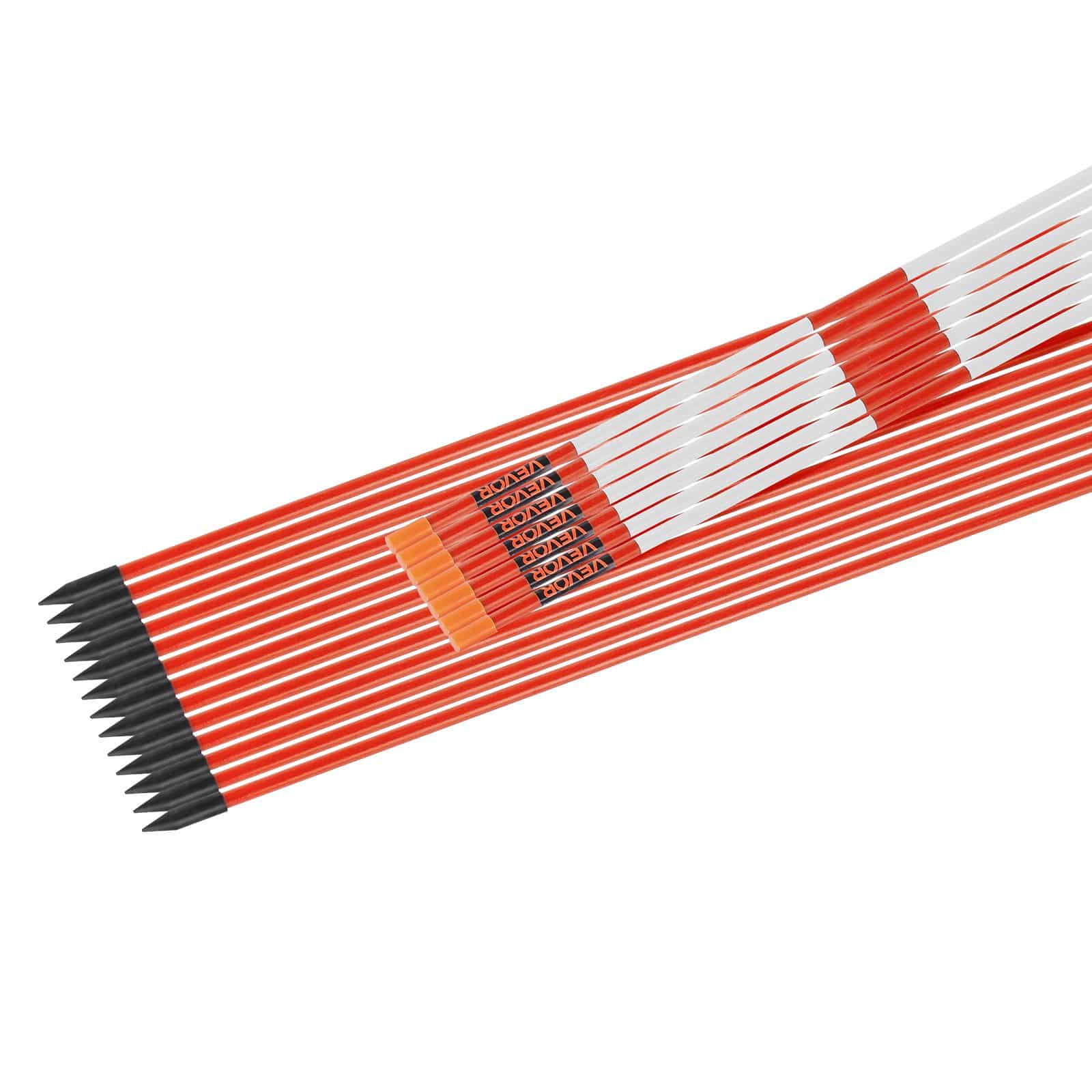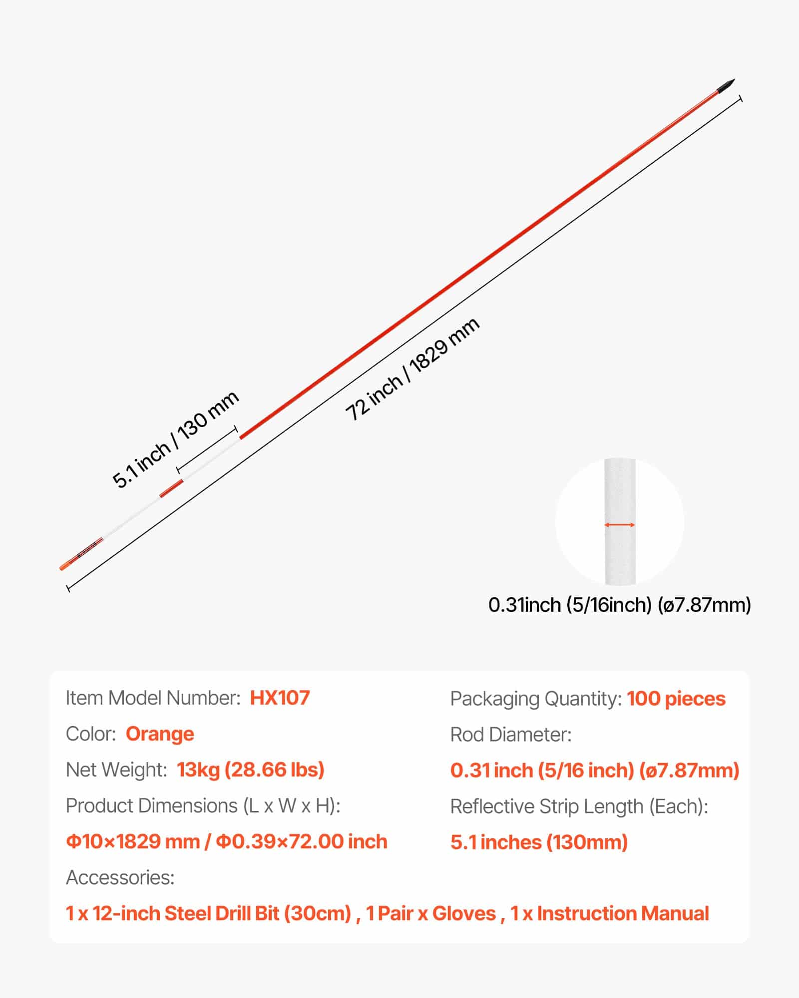 VEVOR Driveway Markers, 100Pcs 183cm Long 7.87mm Dia, Hi-Visibility Driveway Reflectors with 12 in Steel Drill Bits, Reflective Snow Sticks Fiberglass Pole for Parking Lots, Walkways, Snow Plowing