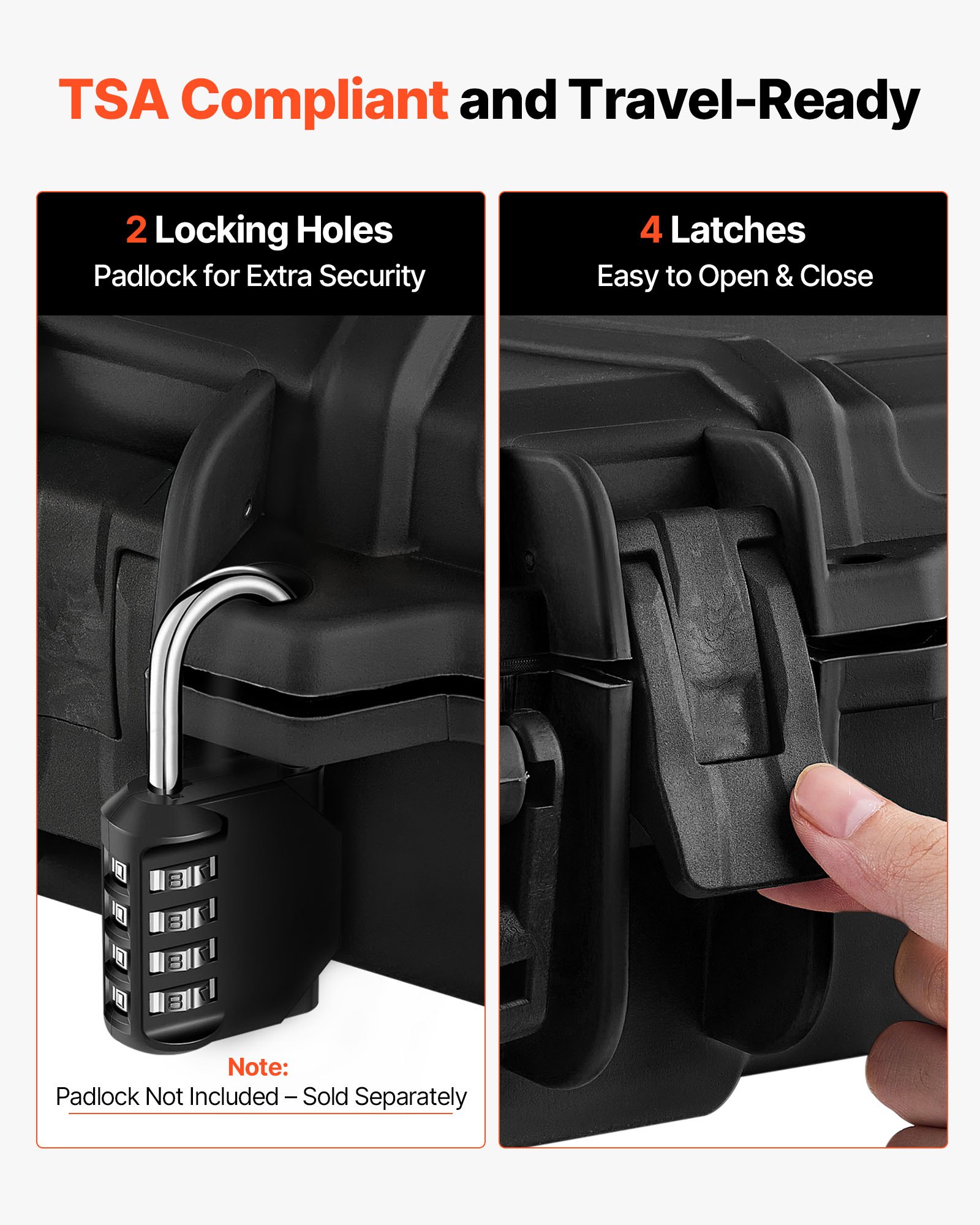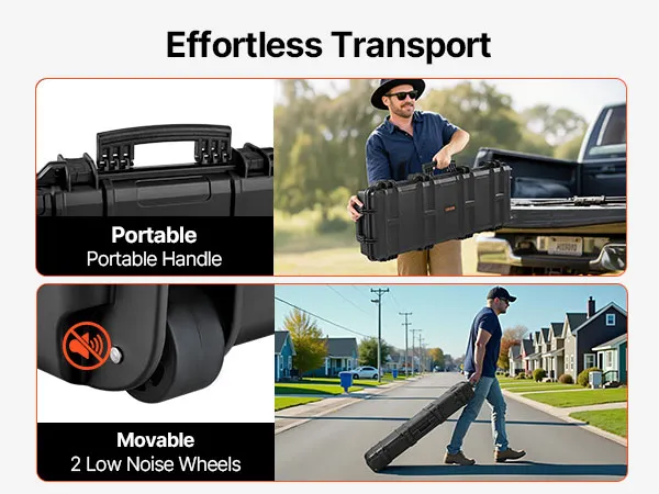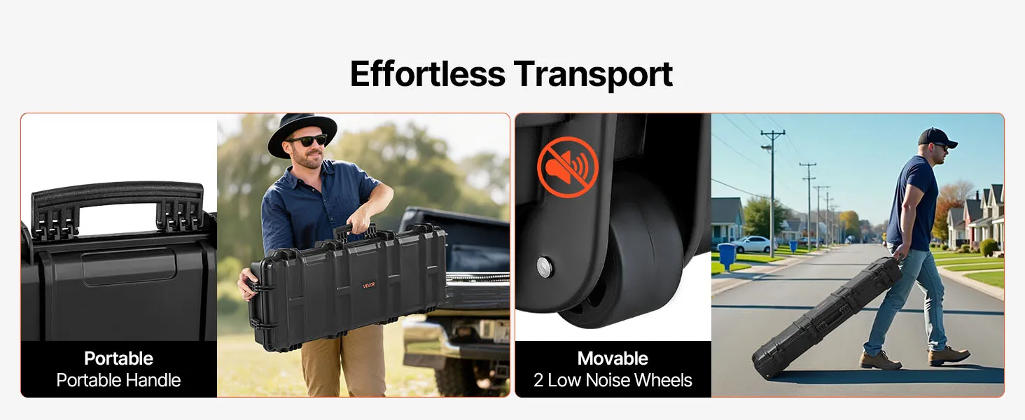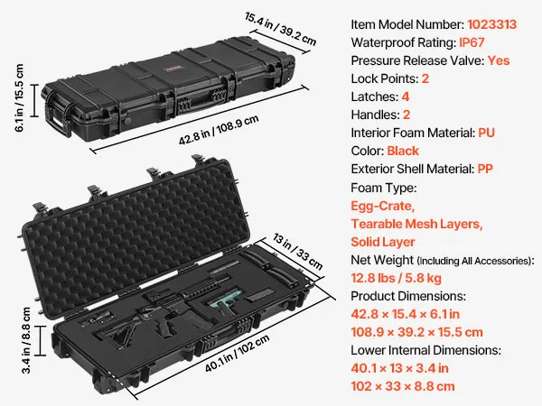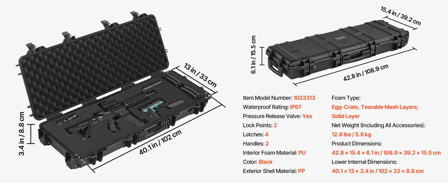 VEVOR Hard Rifle Case, Lockable Rifle Case with Pre-cut Foams, 1016 mm Gun Storage with Wheels, IP67 Waterproof & Dustproof Movable Large Pistol Storage for Rifles, Shotguns, Airsoft Guns, Black