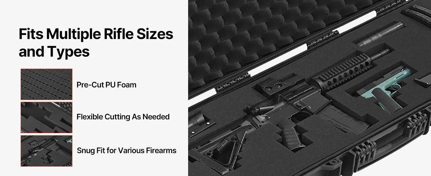 With its rugged construction, this hard rifle case ensures your firearms are always well-protected, keeping them secure in any situation.