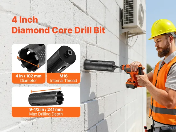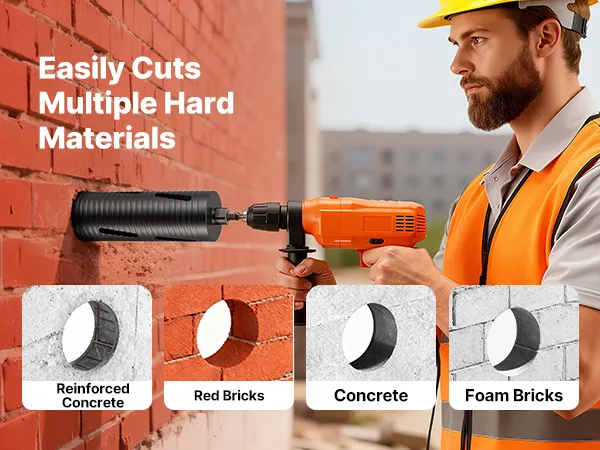 The core bit ensures clean, precise holes in tough materials like red bricks, concrete, and foam blocks. Suitable for all your drilling needs in construction and renovation projects.