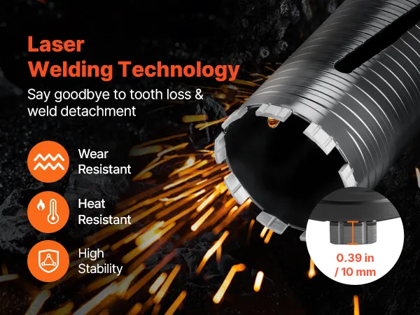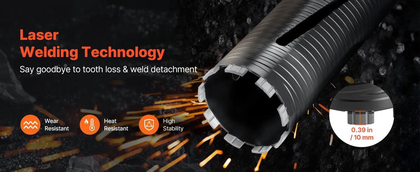 Crafted with high-precision welding for excellent wear resistance and high-temperature stability, this concrete core drill bit keeps diamond teeth strong and secure under tough drilling conditions, minimizing tooth loss or detachment for long-lasting durability.