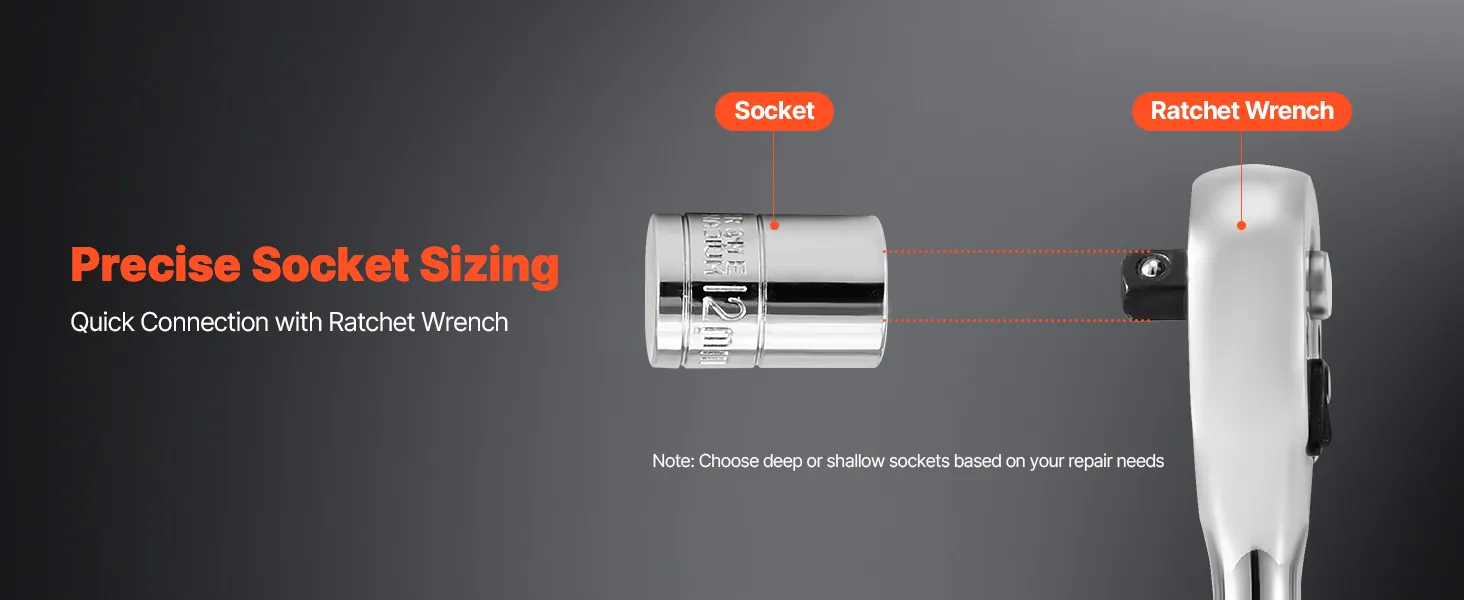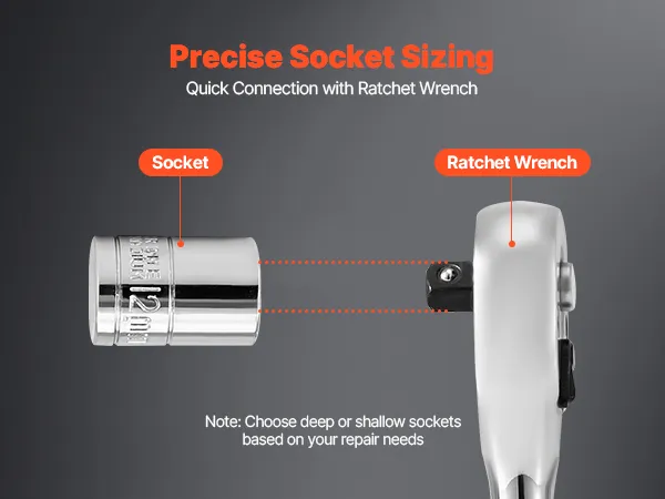 Accurately sized sockets ensure an ideal fit with the ratchet wrench. Effortlessly swap between different sizes to boost efficiency and adaptability for a wide range of applications.