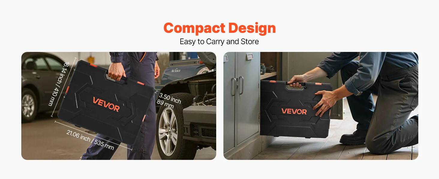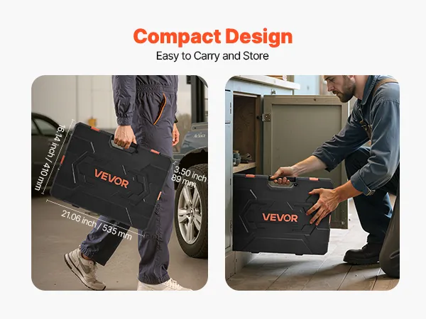 Designed for portability, the case of the metric socket set measures 21.06 x 16.14 x 3.50 inch / 535 x 410 x 89 mm. Its compact size fits easily into tight spaces or can be carried on the go, ensuring efficient work anywhere.