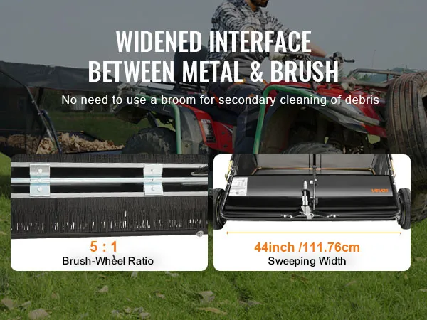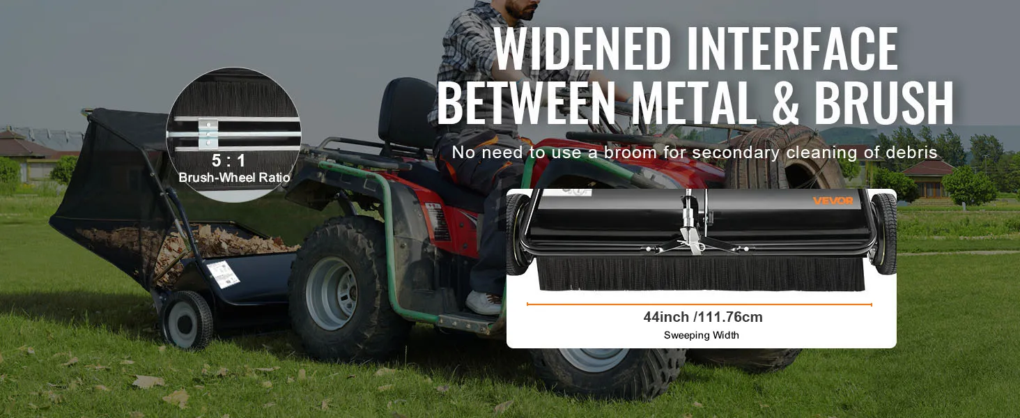 The interface between the metal and brush at the bottom of our tow-behind lawn sweeper is widened to increase the sweeping force, making it easier to clean up all kinds of dry leaves and grass clippings.