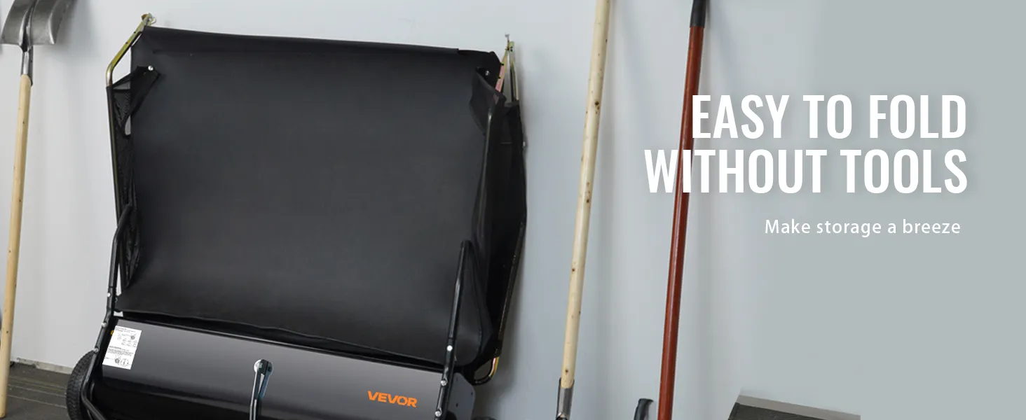Our tow lawn sweeper features a folding design for easy storage. After finishing your outdoor cleaning work, you can easily store it in a shed or hang it on a garage wall.