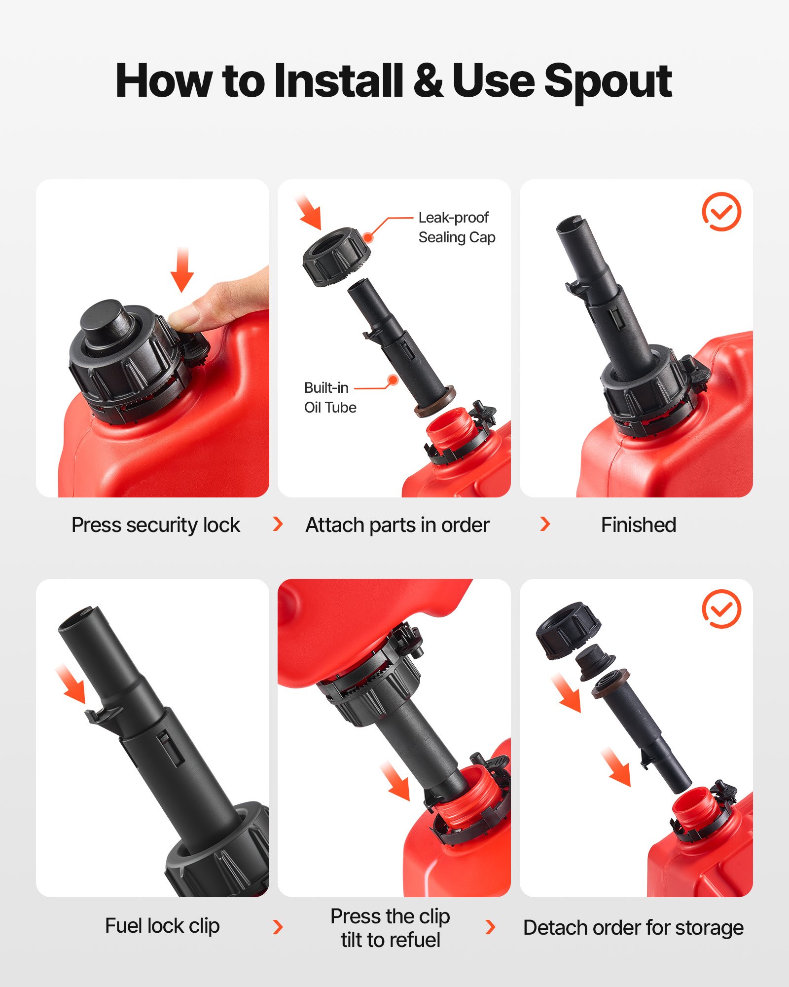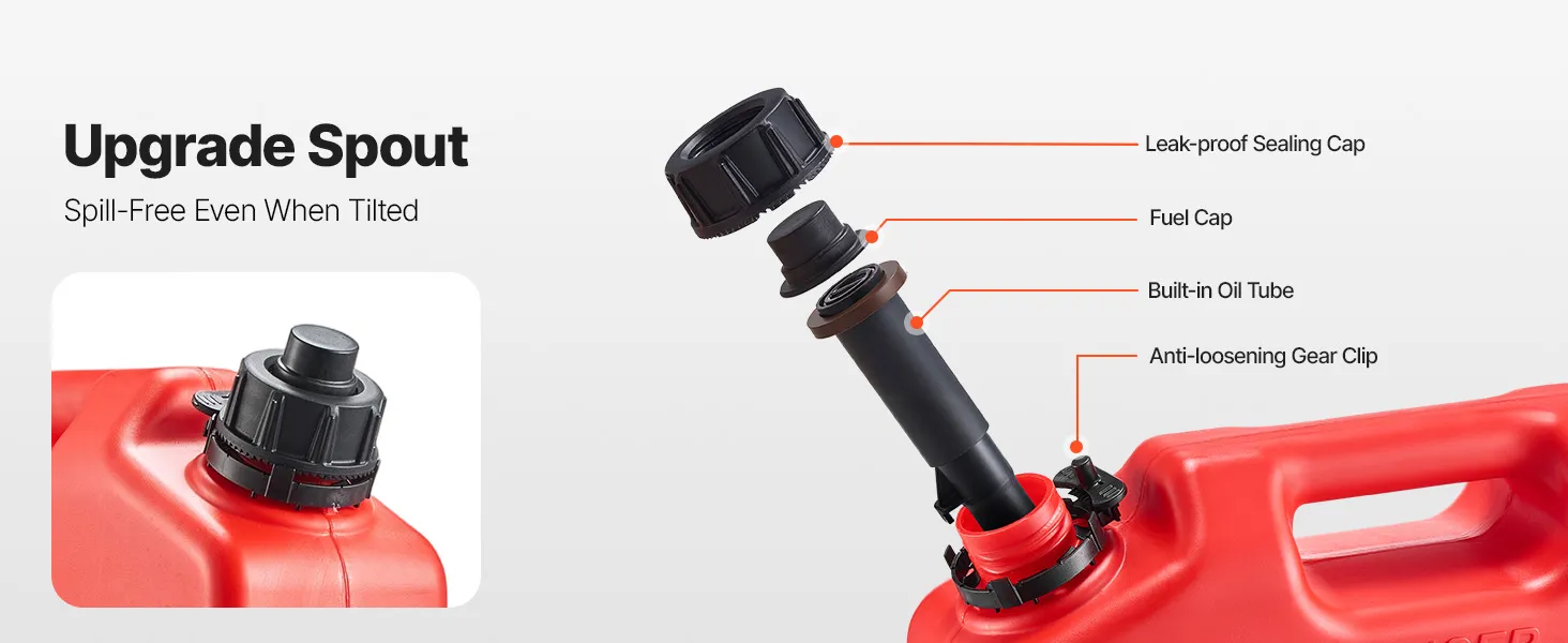 VEVOR Fuel Container, 10 L, Gas Can with Spout and Lockable Bracket, 15 L/min Max Flow Rate, Secure & Leak-proof, Portable Flat Fluid Container for Most Cars Motorcycle ATV UTV, Red
