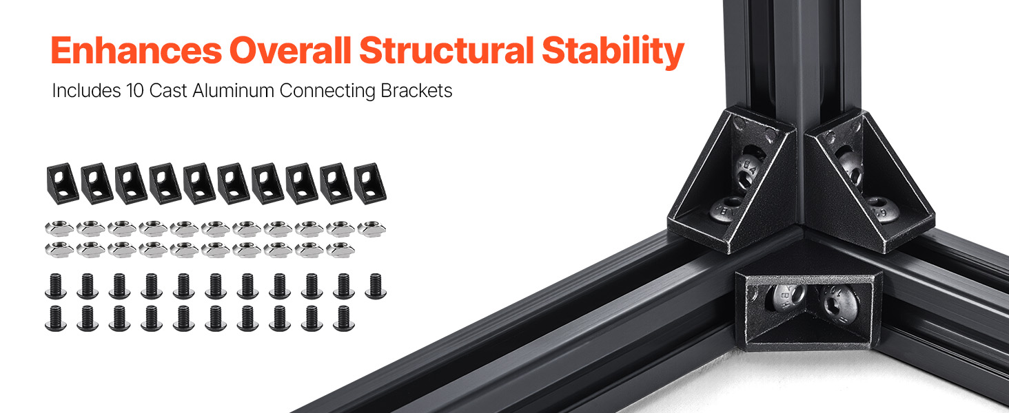VEVOR 10PCS 39.4in (1000mm) T Slot 2020 Aluminum Extrusion Profile, European Standard Anodized Linear Rail, High-Strength Extruded Aluminum Rail for 3D Printer, CNC Machine DIY, Laser Engraving, Black