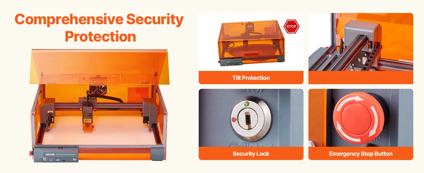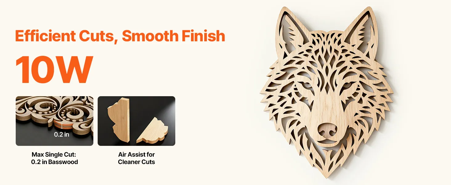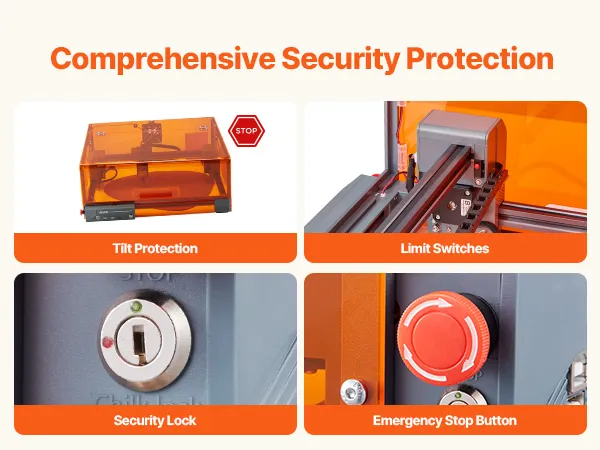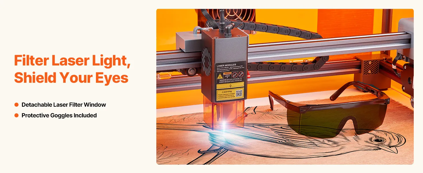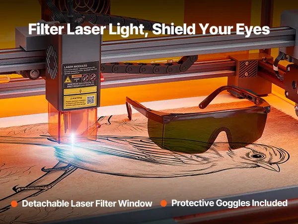 Locks accidental laser exposure to safeguard eyes and skin, this wood laser engraver is especially suitable for homes, schools, and maker studios.