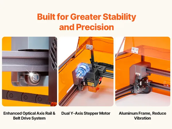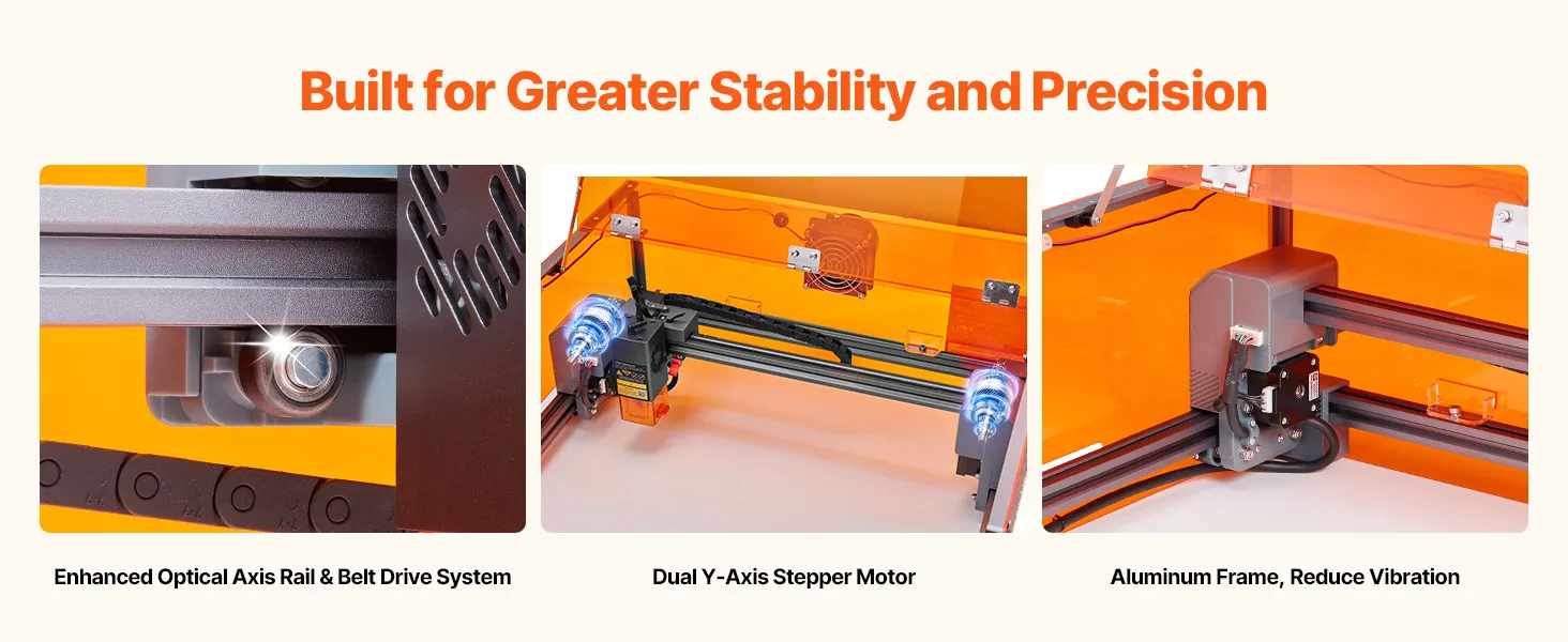 Reduces vibration for high engraving precision, our laser engraving machine deliveres smooth edges and fine details.