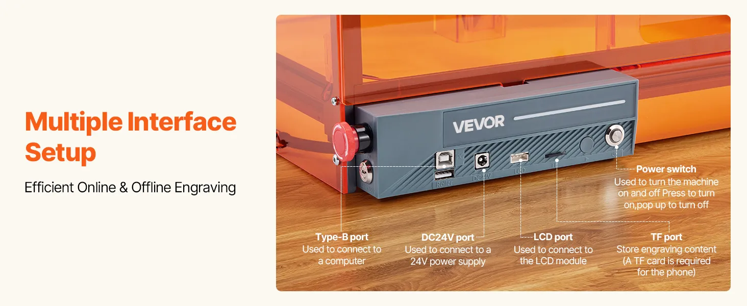 This laser cutter and engraver machine allows even beginners to react quickly and minimize risks during operation.