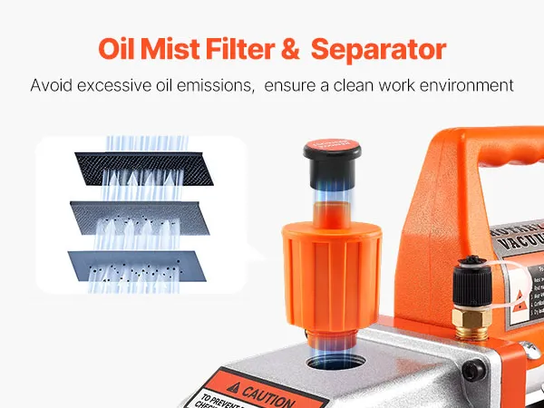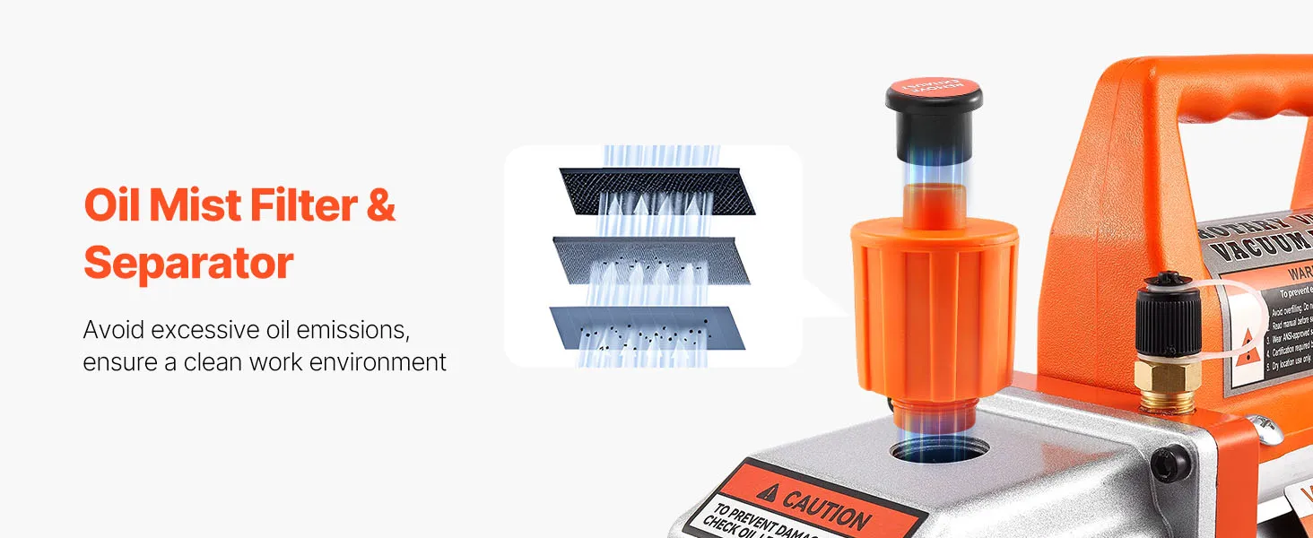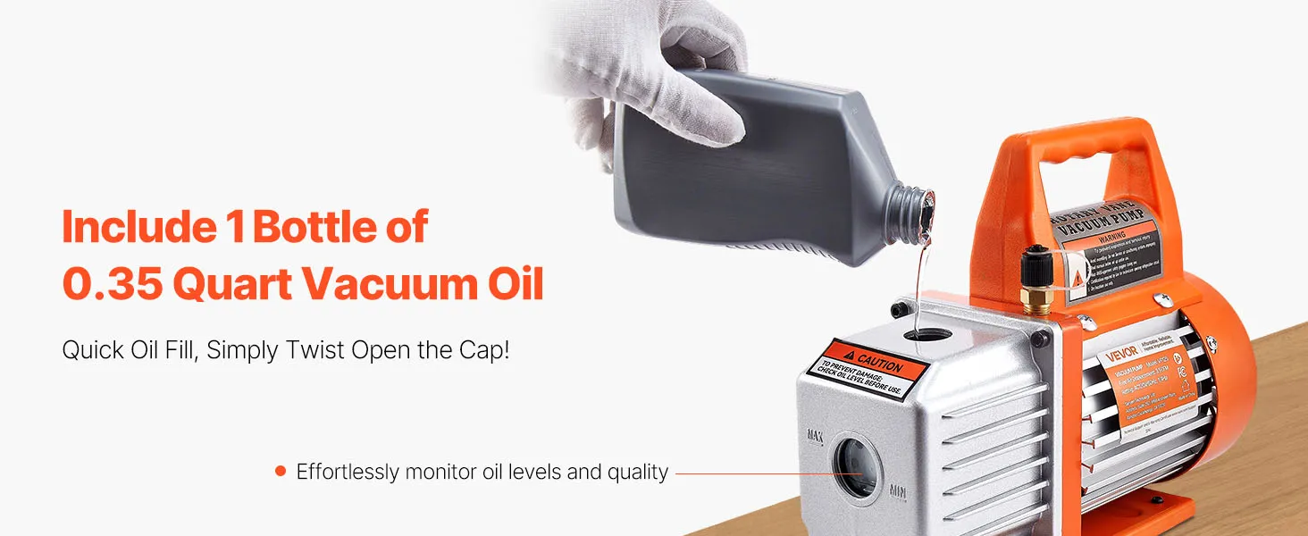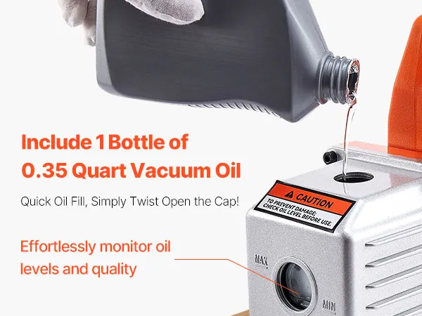 • Удобный дизайн: Эргономичная ручка вакуумного насоса удобно лежит в руке, а резиновое покрытие обеспечивает удобный захват и портативность. Кроме того, масляное окошко имеет четкую маркировку, так что вы можете сразу увидеть уровень масла
