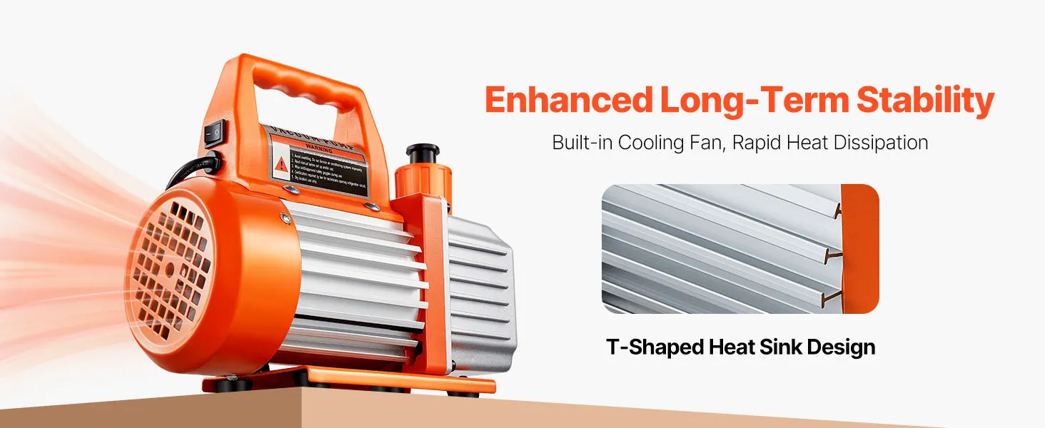 • Стабильная и надежная работа: Одноступенчатый вакуумный насос, приводимый в действие 4-полюсным двигателем с высоким крутящим моментом, обеспечивает длительный срок службы. Встроенный охлаждающий вентилятор предотвращает перегрев при длительном использовании, обеспечивая стабильную и надежную работу при выполнении любой работы.