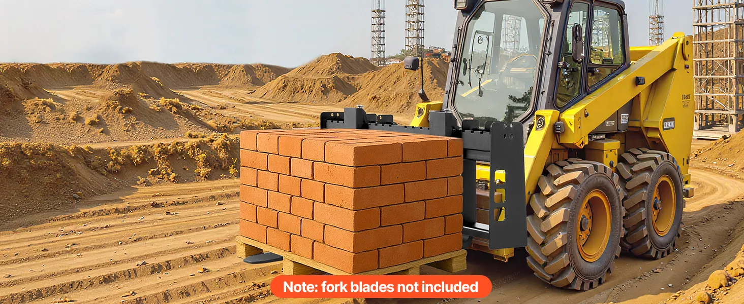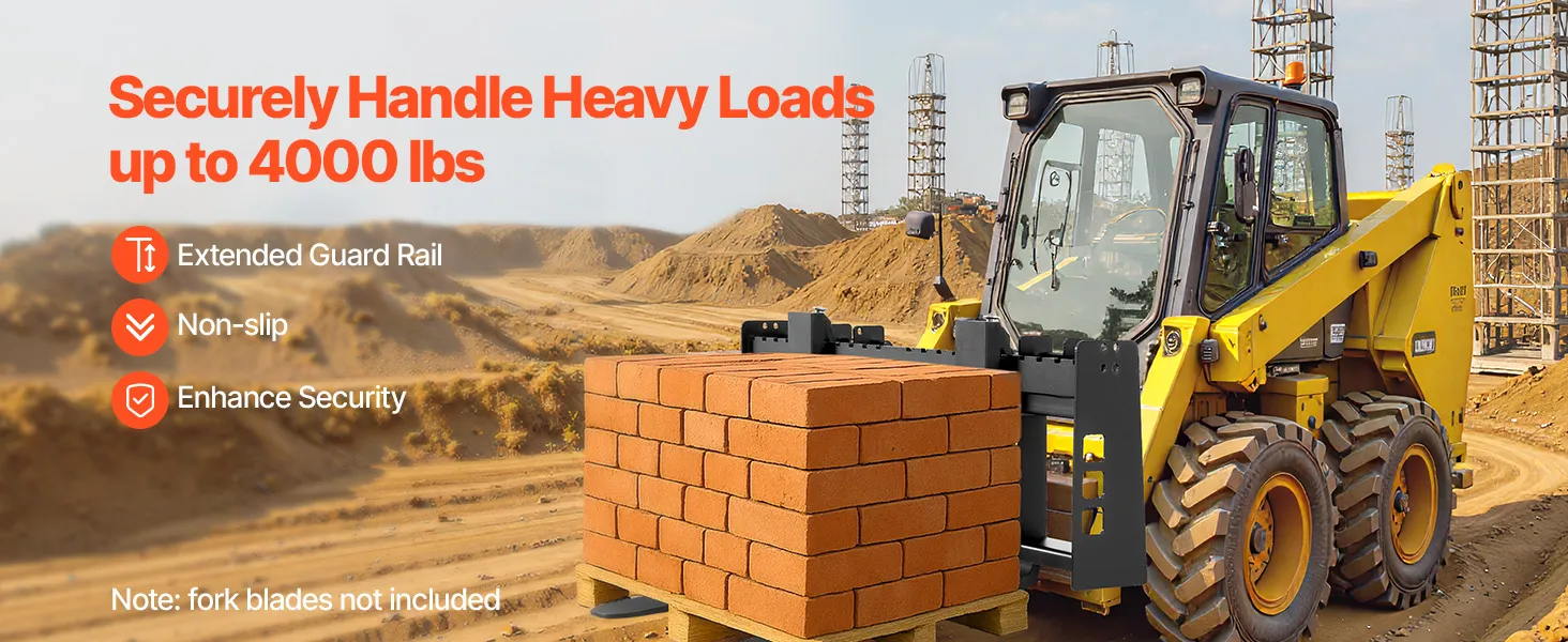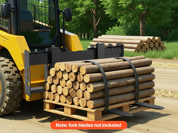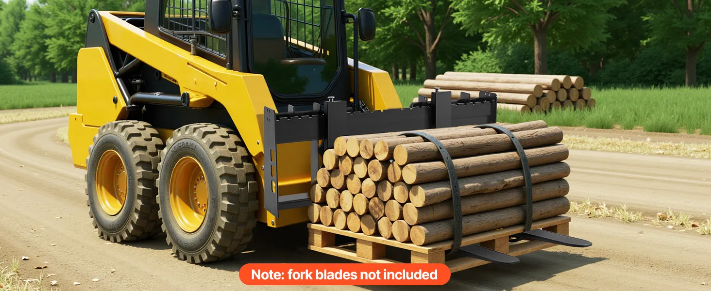This 4000 lbs-rated pallet forks frame fits most skid steers and tractors. Ideal for moving hay bales, building materials, and more on farms, gardens, or construction sites. Efficient and reliable for heavy-duty tasks.