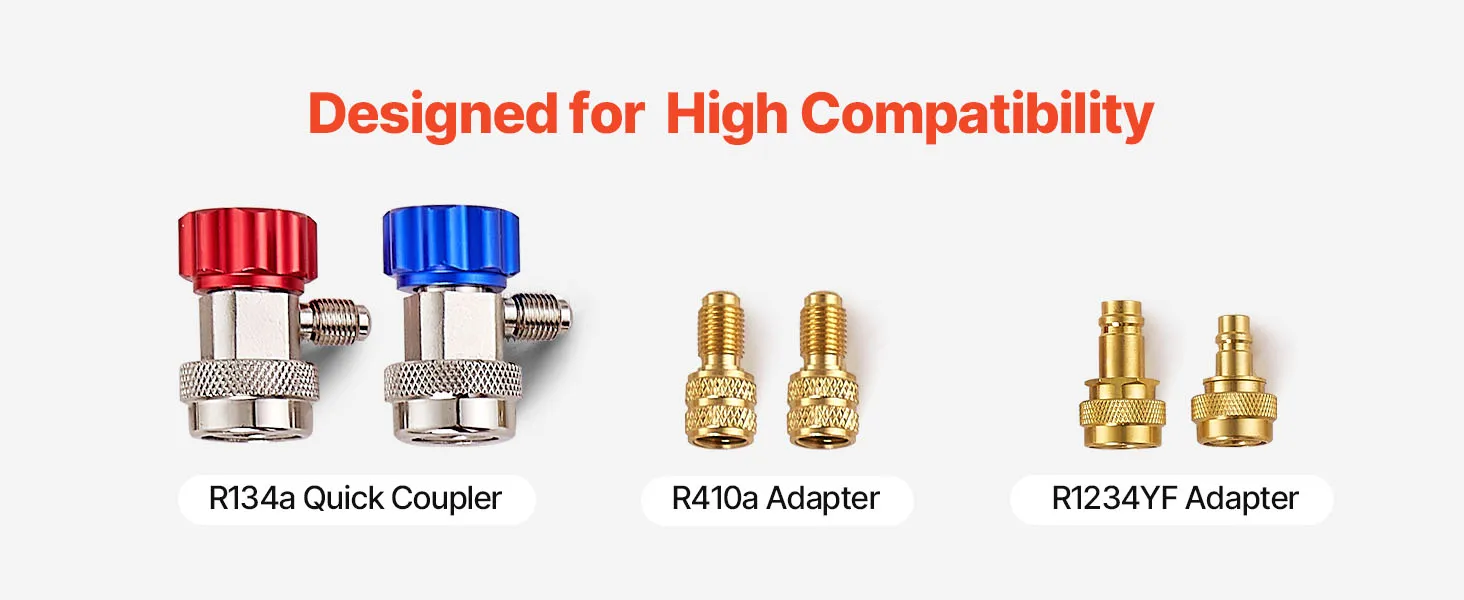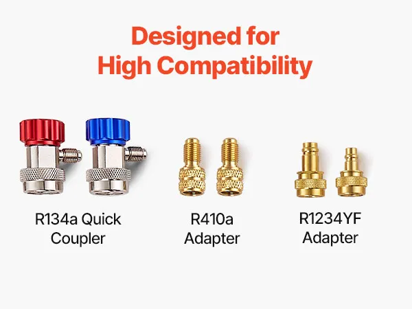 - R134a, R22, R410a, R1234YF, R32, and other A2L and A1 refrigerants,