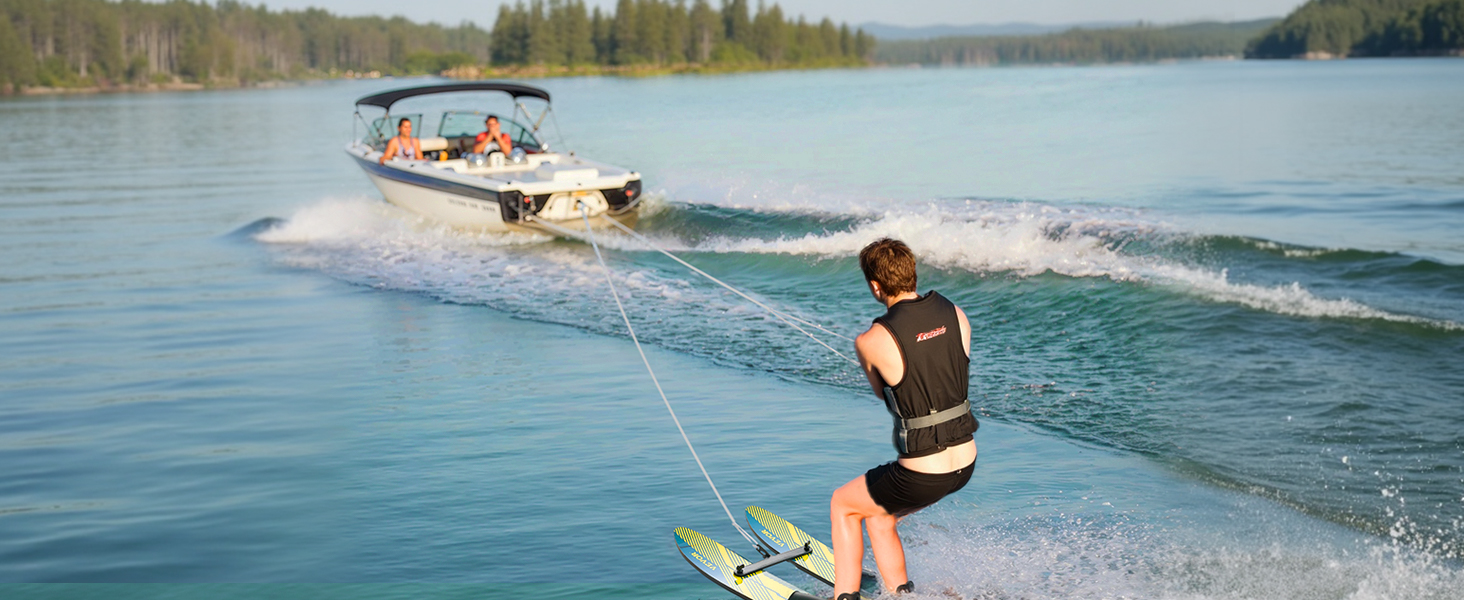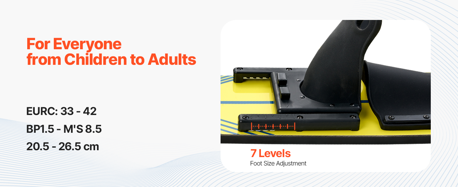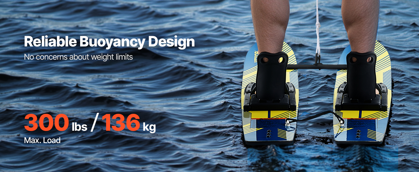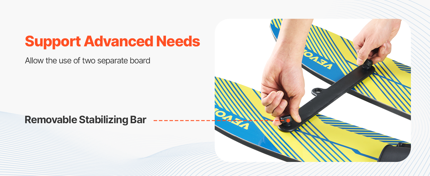 Start your water skiing journey with confidence! Our 46-inch (116.84 cm) water skis are tailored for beginners and young enthusiasts, offering the perfect balance of stability and fun. With adjustable X-7 bindings, removable stabilizing bar, and handheld rope, you’ll experience safer rides.